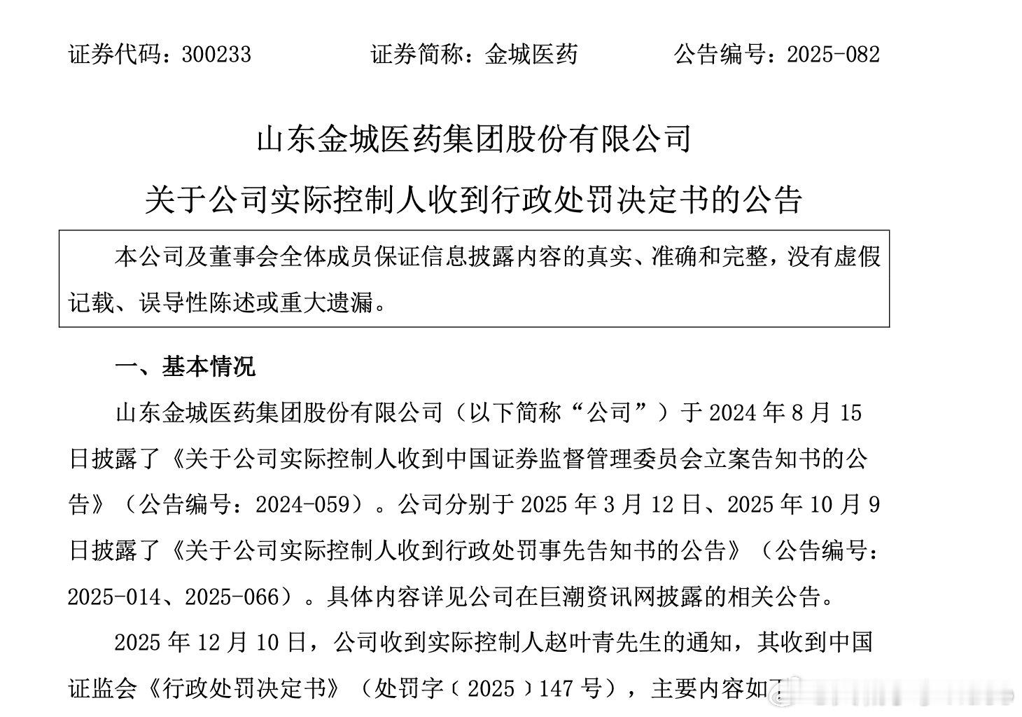 【A股董事长开104个账户操纵股价】A股董事长595个交易日操纵股价 历时一年多的调查,金城医药实控人赵叶青带头操纵股价一案迎来结局。日前,金城医药接连发布两则公告:公司董事长赵叶青因主导长达近三年的股票操纵行为,被中国证监会罚款150万元并实施4年市场禁入措施。同时,公司表示,赵叶青已于当日提交书面辞职报告,正式辞去公司所有职务。随着处罚决定书的发布,这起历时近三年的股价操纵案的诸多细节也浮出水面。不过,尽管赵叶青等人凭借资金与持股优势,通过104个账户在595个交易日中连续买卖“金城医药”股票,但上述账户组最终亏损739.2万元。公告显示,根据当事人违法行为的事实、性质、情节与社会危害程度,中国证监会决定,对赵叶青、王震、刘峰处以300万元罚款。其中,赵叶青承担150万元,王震承担120万元,刘峰承担30万元。同时,中国证监会对赵叶青采取4年市场禁入措施;对王震采取3年市场禁入措施。在禁入期间内,除不得继续在原机构从事证券业务或者担任原上市公司、非上市公众公司董事、监事、高级管理人员职务外,也不得在其他任何机构中从事证券业务或者担任其他上市公司、非上市公众公司董事、监事、高级管理人员职务。赵叶青、王震、刘峰上述三人曾以“无主观故意”“无操纵的客观行为”“计算有误”“量罚不当”等理由申辩,但中国证监会结合资金转账记录、交易硬件设备关联情况、当事人陈述、证人证言和通讯记录等证据,最终对三名当事人的申辩意见不予采纳。(上证报)