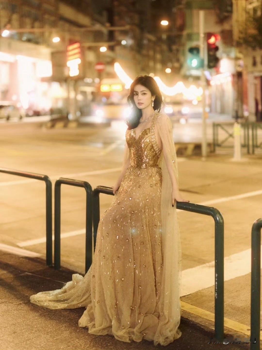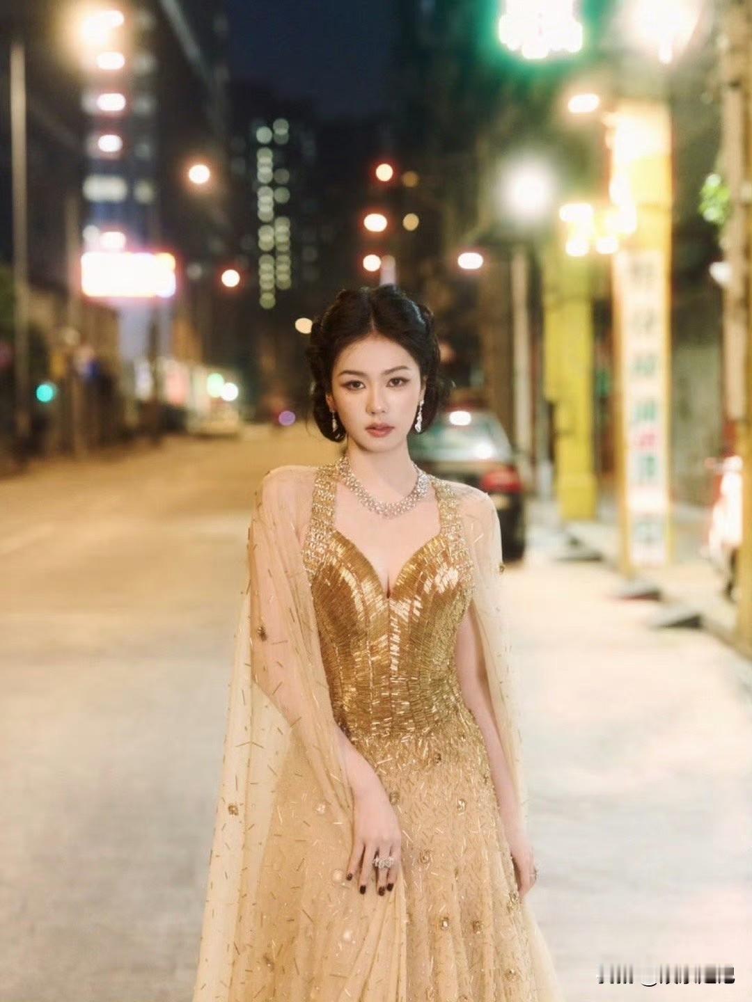 十几万的礼服,一公里的体面都不要了。在上海外滩,孙俪刚结束品牌活动,身上是价