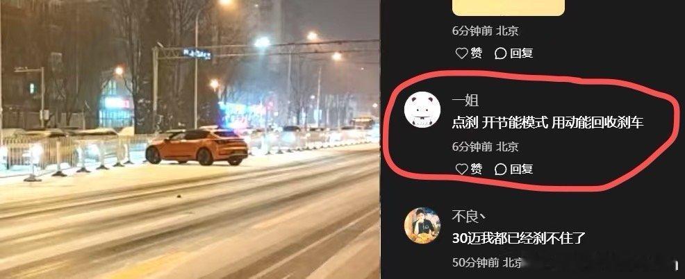 小红薯上看到的,大姐说:“新能源车雪天要点刹,并且打开节能模式用动能回收刹车”,