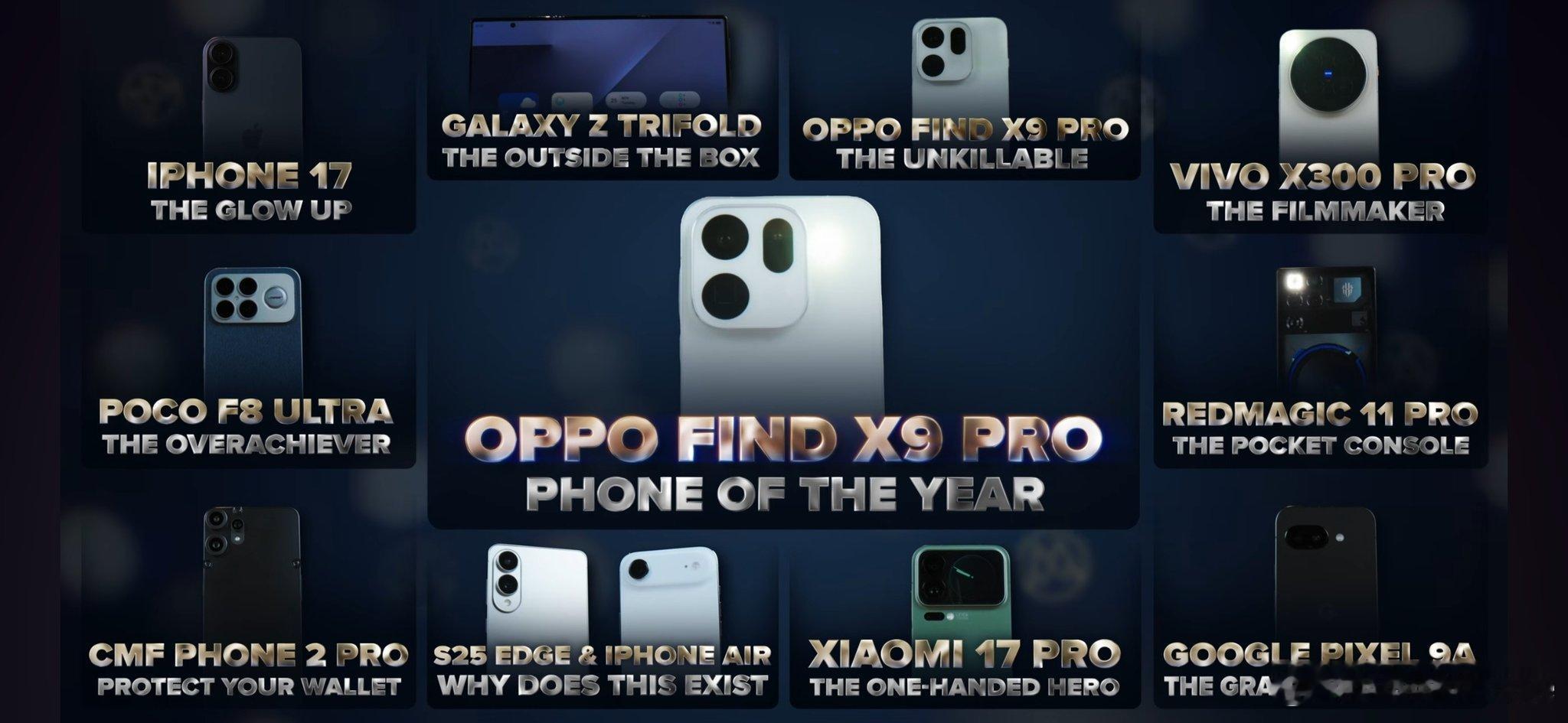 继MKBHD之后,另一顶流Mrwhosetheboss也整了个2025年智能手机大奖评选:年度最佳手机(无敌):OPPO Find X9 Pro最佳升级奖:iPhone 17打破常规奖:三星Galaxy Z TriFold最佳拍摄手机:vivo X300 Pro超出预期奖:POCO F8 Ultra(REDMI K90 Pro Max)最佳游戏手机奖:红魔11 Pro最高性价比奖:CMF Phone 2 Pro最佳小屏机:小米17 Pro看不懂机型(又贵体验又差):S25 Edge & iPhone Air最佳老人机:Google Pixel 9A符合你的预期么?