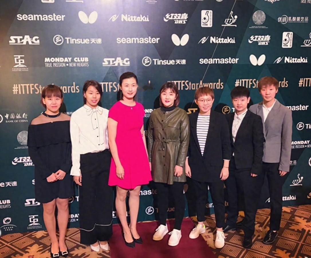7位女乒队员私服合照:最亮眼的就是身着玫红色衣裙的丁宁与穿着灰绿色皮衣的陈梦;其次就是金发覆额的陈幸同、朱雨玲与王曼昱! 没想到萌嘟嘟的孙颖莎个头居然最矮小!有意思的是,左侧三位像是在过夏,右侧4位分明在过秋,你看是吧?顺便问一下那位穿白衬衫的姑娘是谁?