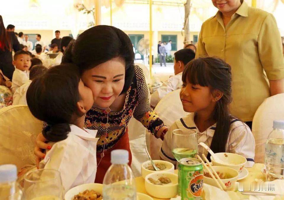 洪森夫人挺会穿衣服的,服装华丽,俯下身来又不易走光,挺好的。