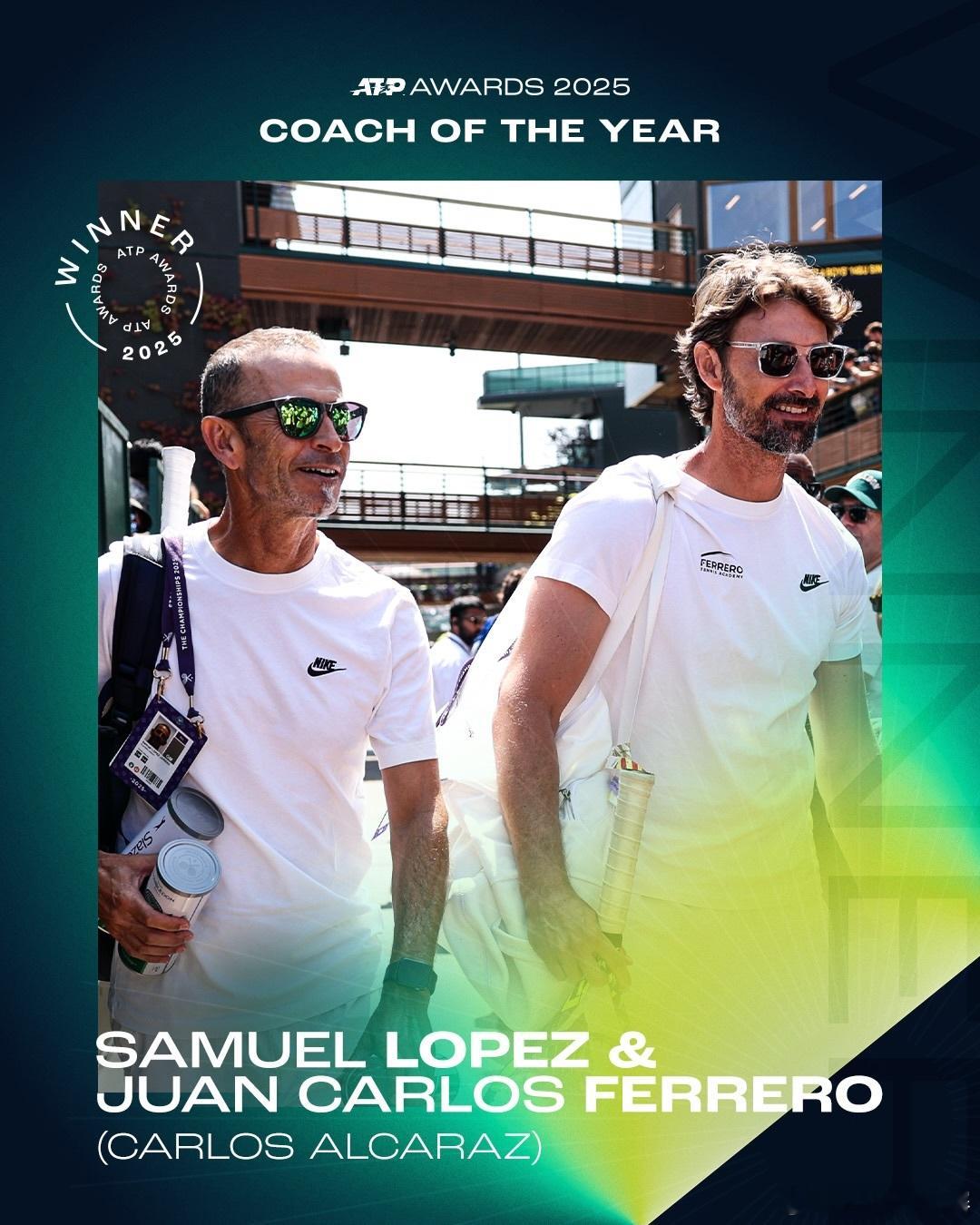 2025 ATP年度奖项完整名单请查收✉️阿瑟·阿什人道主义大奖:卢布列夫斯蒂芬·埃德伯格体育风尚大奖:阿尔卡拉斯最受欢迎双打组合:伯莱里/瓦瓦索里最受欢迎单打球员:辛纳年度突破球员奖:瓦舍罗年度教练奖:费雷罗、塞缪尔·洛佩兹(阿尔卡拉斯)最佳ATP1000 :美国·辛辛那提大师赛最佳ATP500:卡塔尔·多哈公开赛最佳ATP250:瑞典·巴斯塔德公开赛网来不息ATP