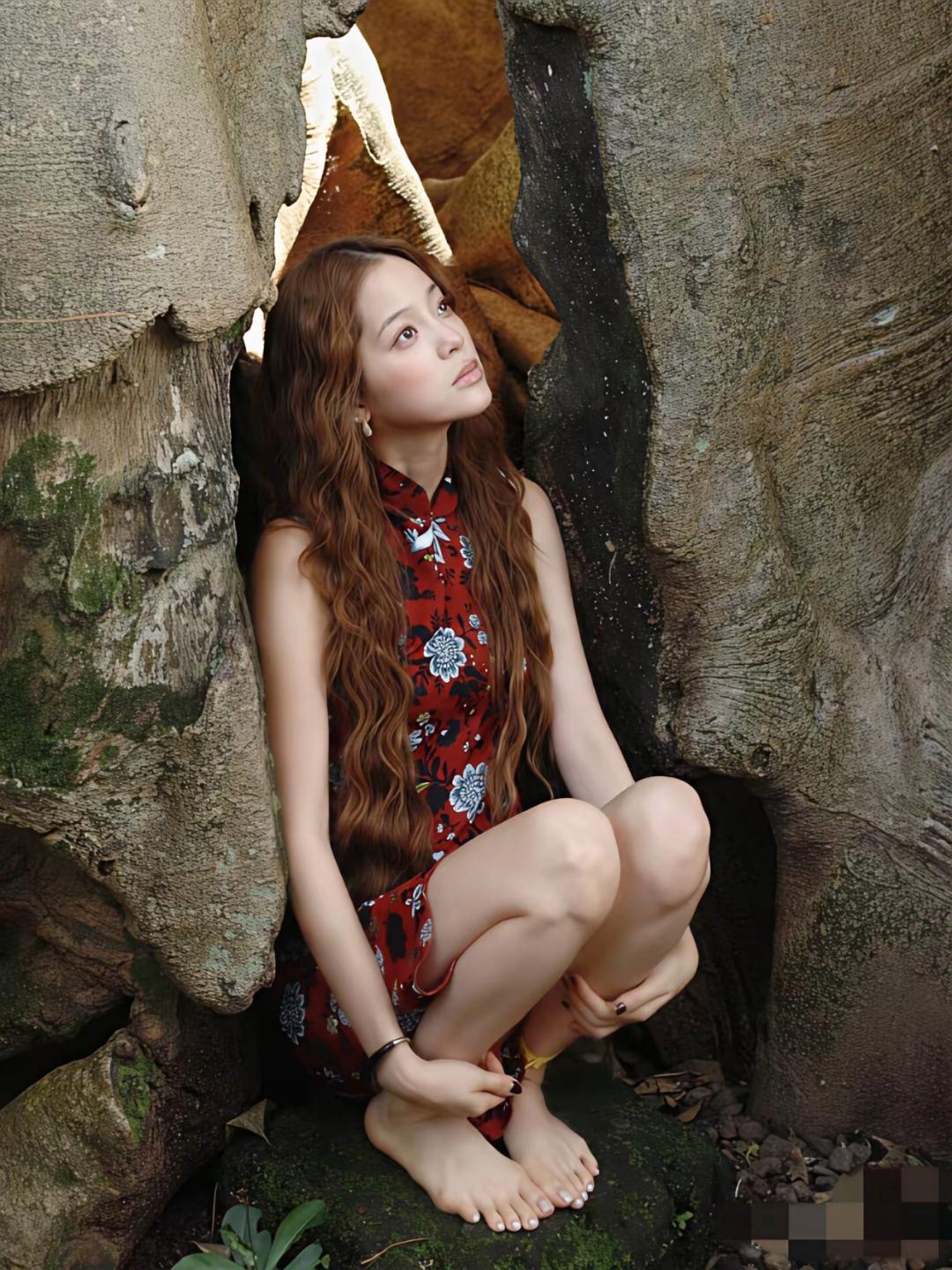 镜头中的欧阳娜娜肌肤莹洁如玉,金色波浪发及腰,细眉飞扬,双腮染赤,睛若点漆,唇若涂朱,煞是迷人,唯一美中不足的是玉足过大脚趾有些难看,你觉得呢?