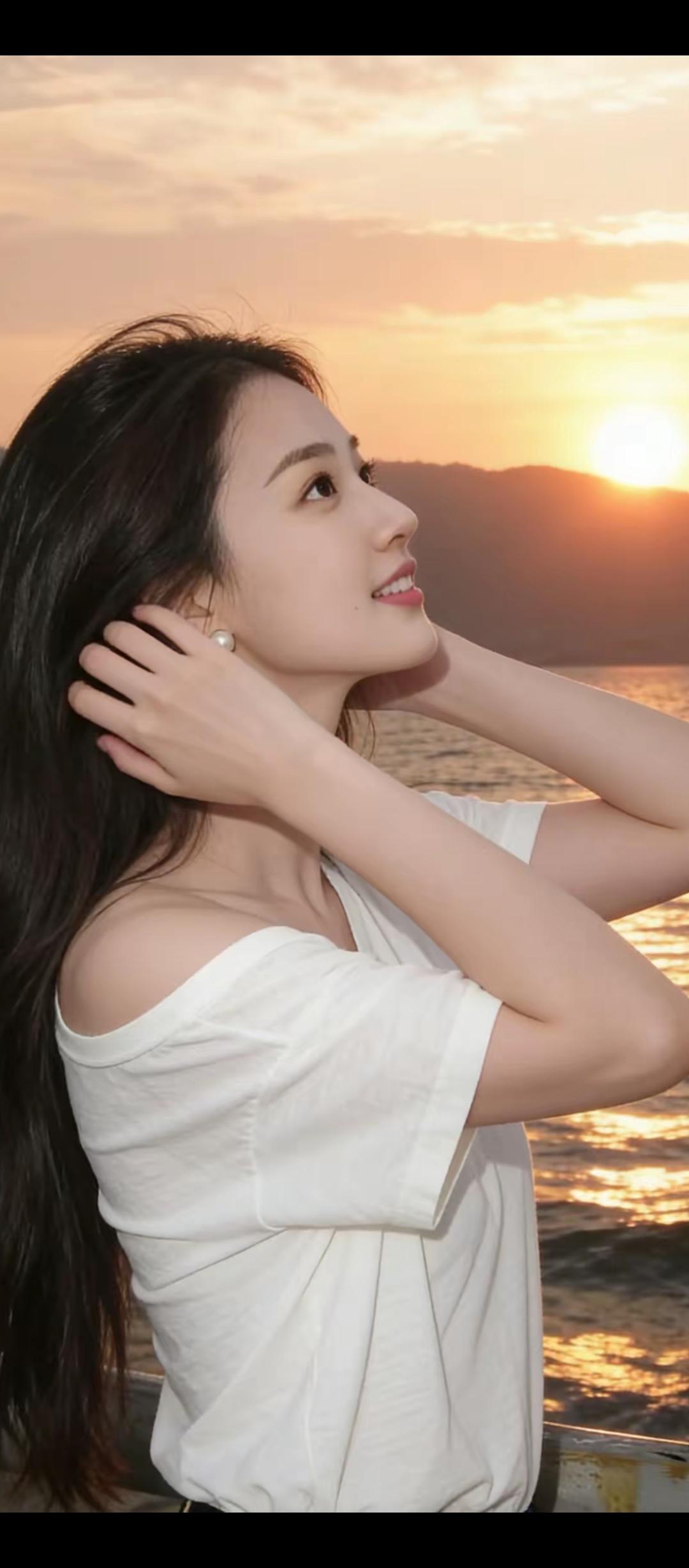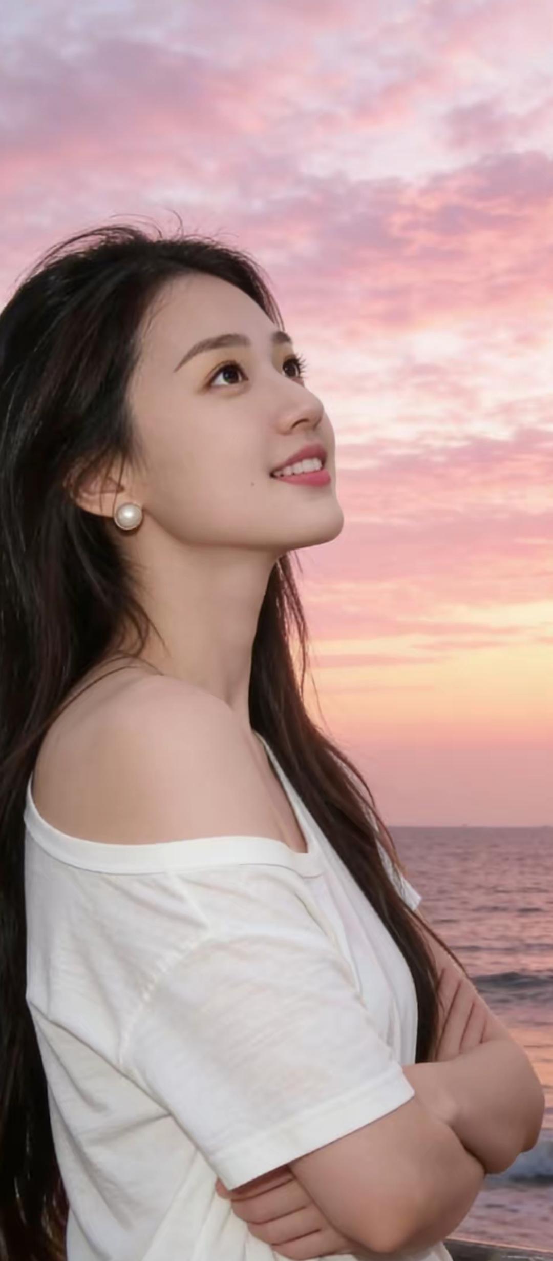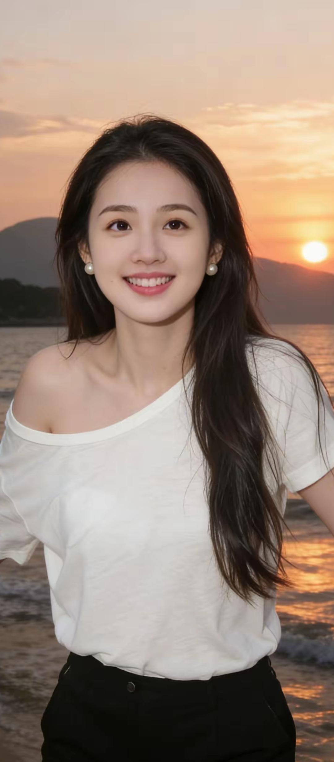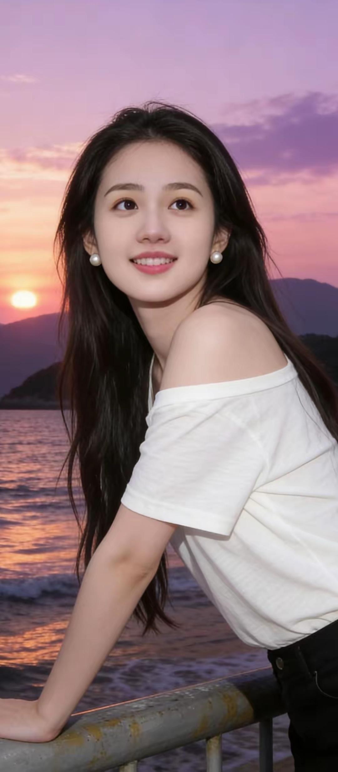 夕阳下的温柔微笑,海风轻拂,岁月静好。