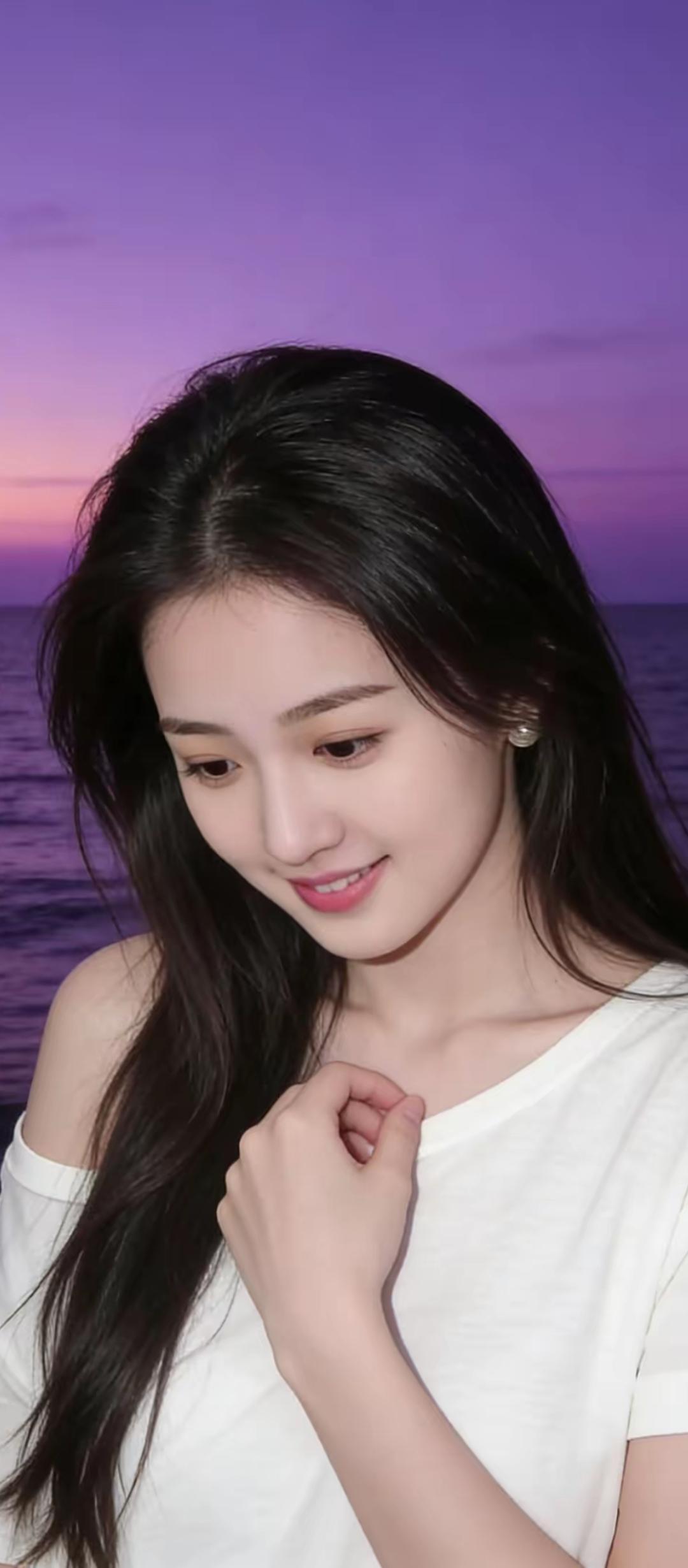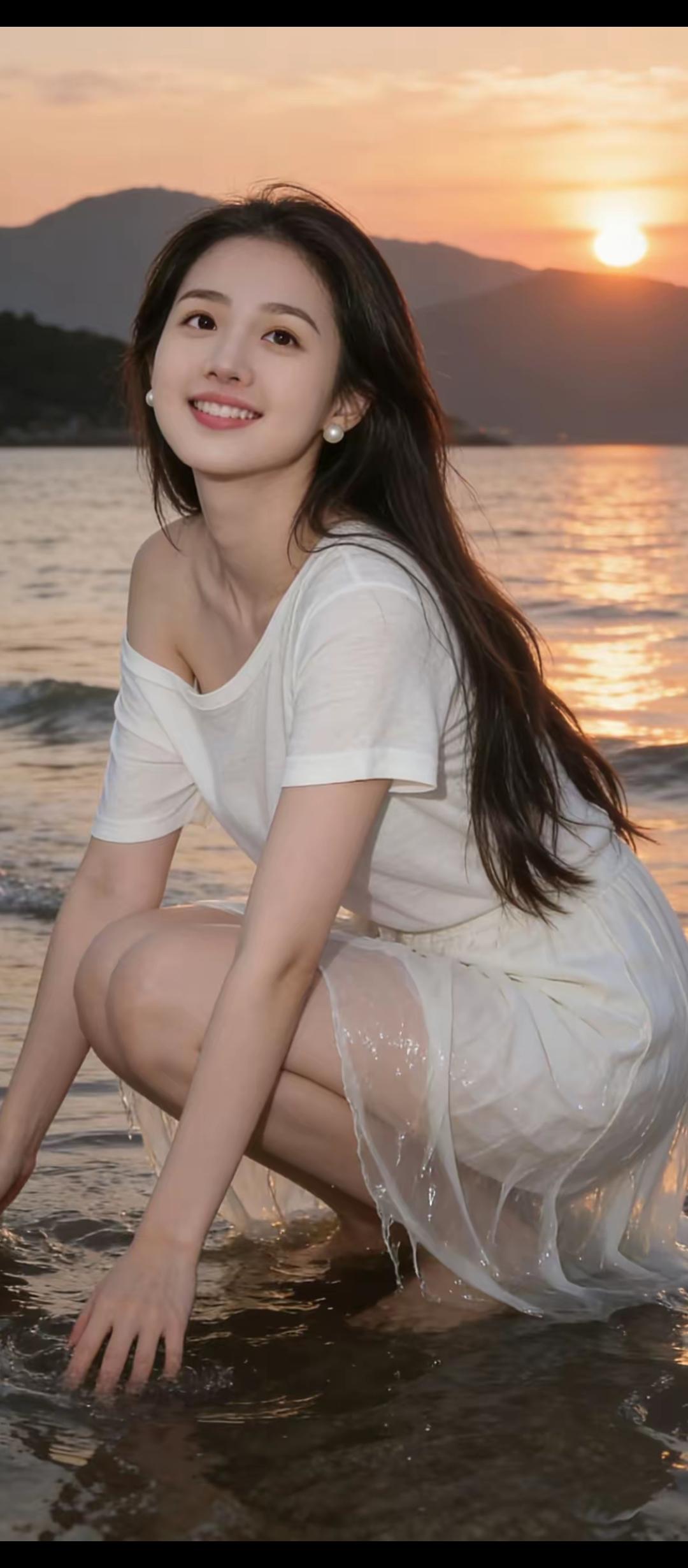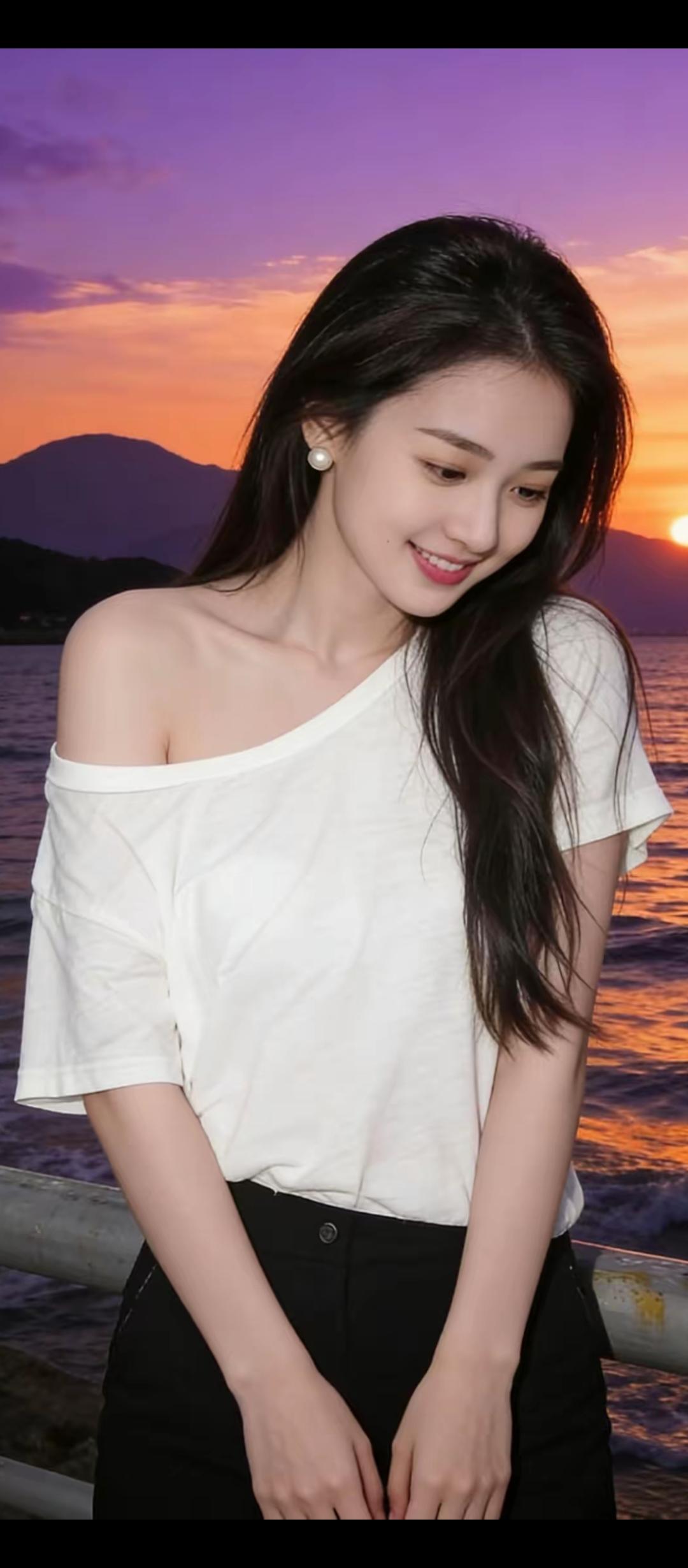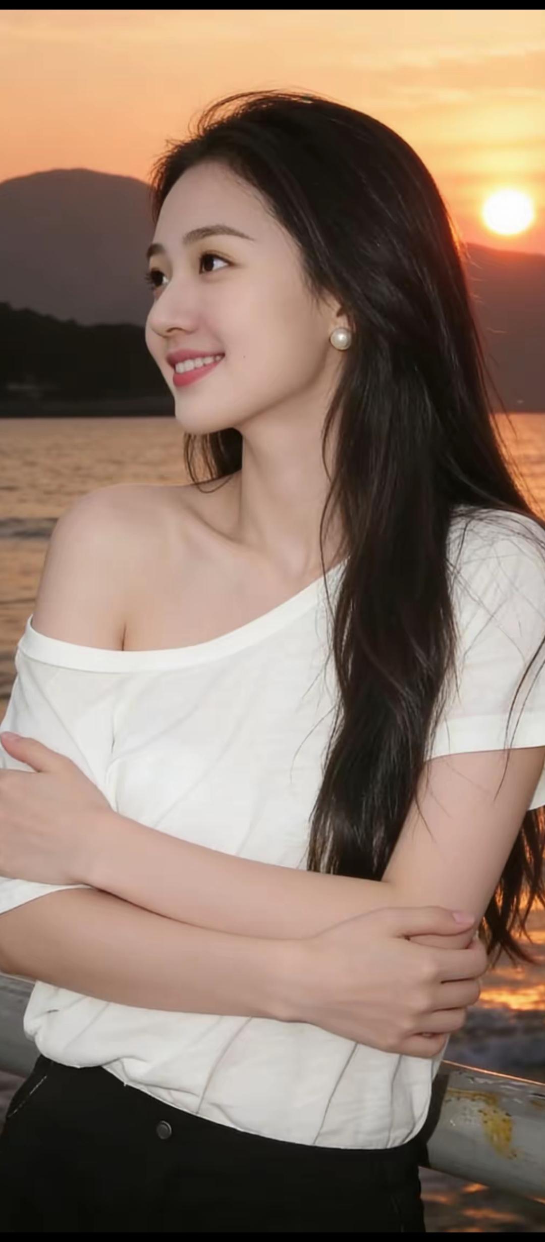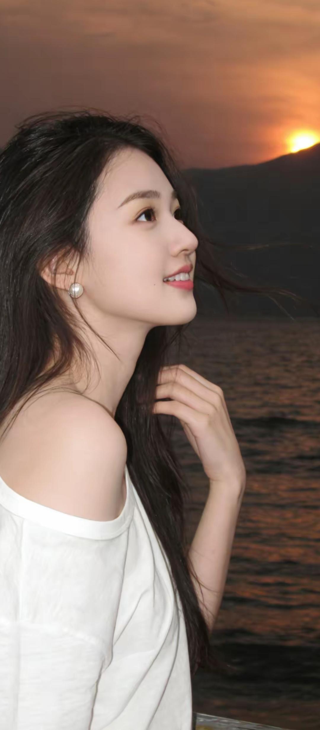 夕阳下的温柔微笑,海风轻拂,岁月静好。