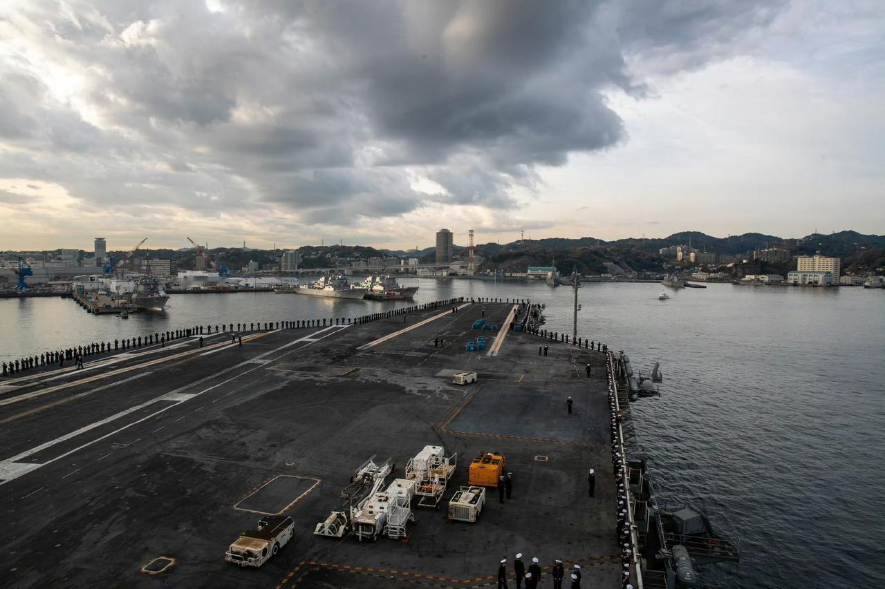 🔻日本防卫省报告:我辽宁号战斗群编队5艘舰艇在今天返航东海。 🔻自12月6日至12日期间,累计舰载机起降共计约260架次。 🔻另外,“在日米海軍司令部”报告:“我家的大孩子,航空母舰乔治·华盛顿号结束部署任务返航了。在进入横须贺港时,从飞行甲板上能欣赏到美丽的富士山。”