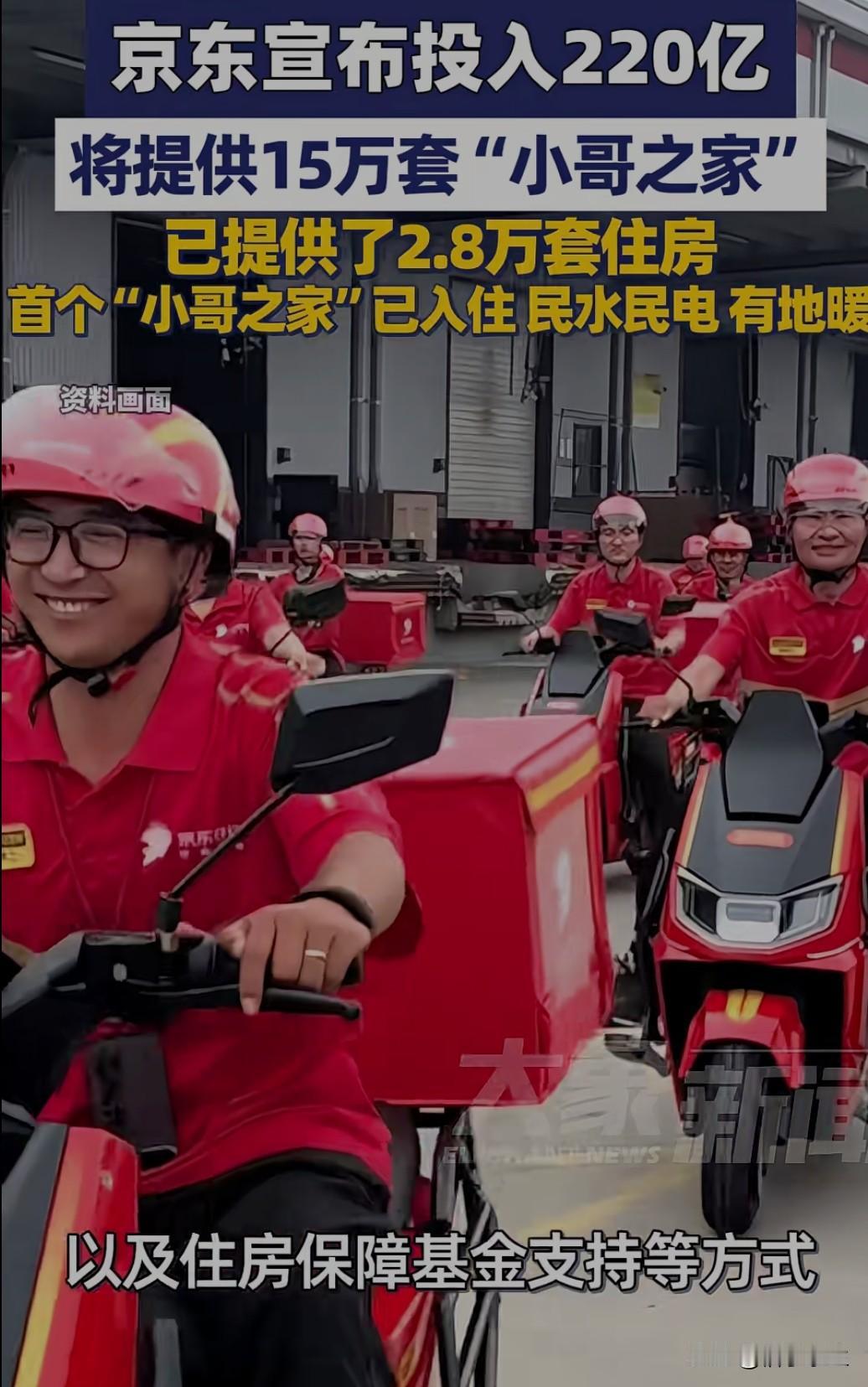 京东今日宣布一项重磅计划:未来5年投入220亿元,在全国建设15万套"小哥之家"