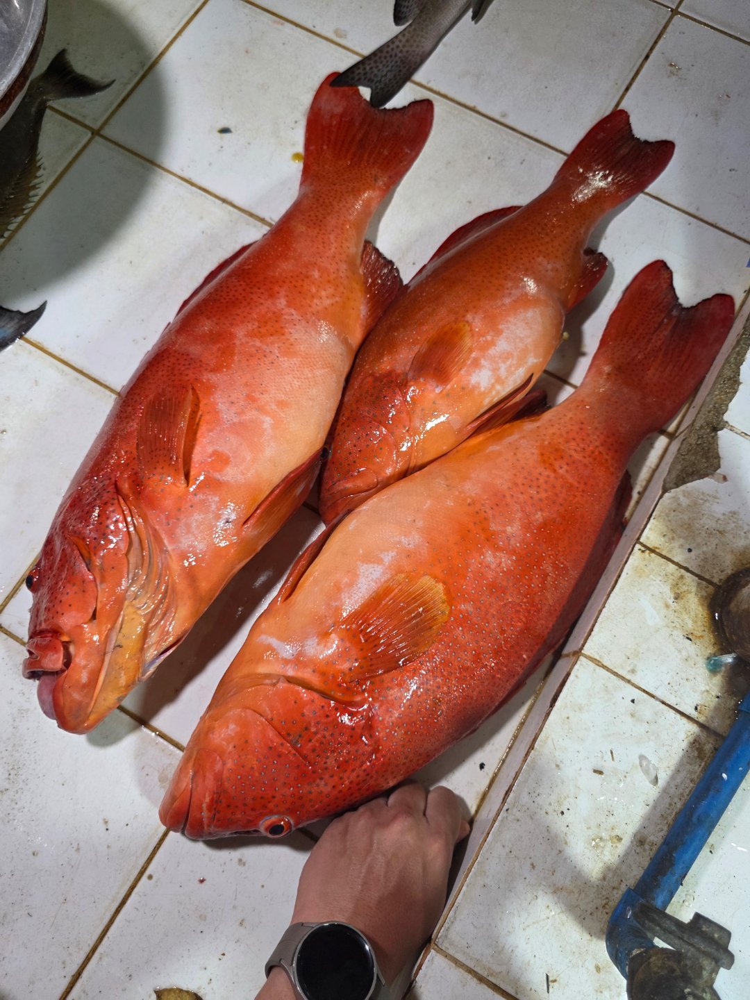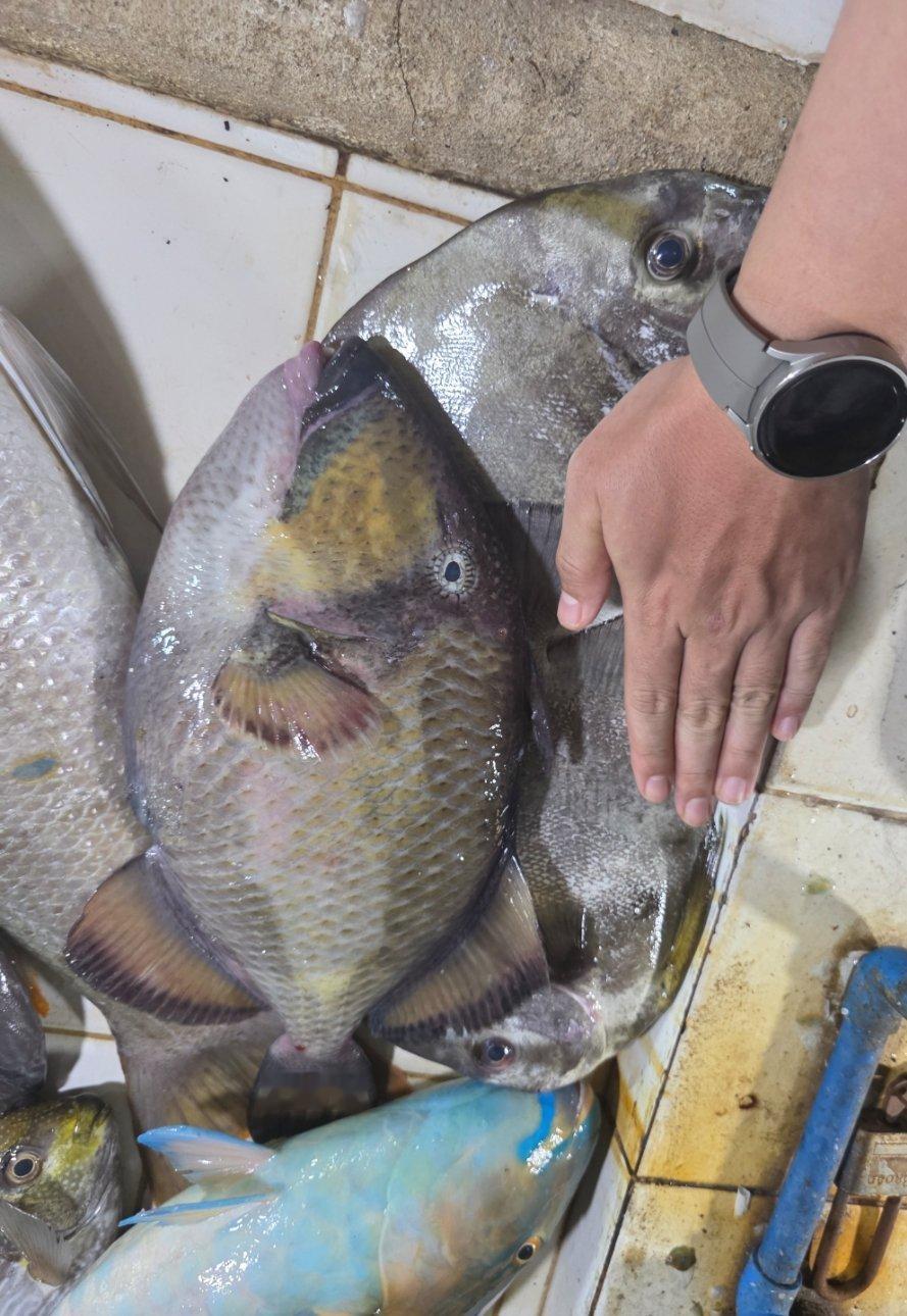 10多斤的大东星斑【眼神清澈】400P/一公斤【汇率7.5】400/7.5/2=26.7元一斤炮弹180P/一公斤,可是不新鲜