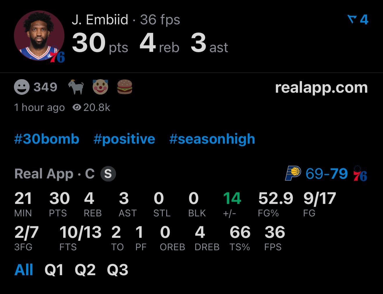 恩比德今天大帝显灵,21分钟爆砍30分。熟悉的恩比德回来了