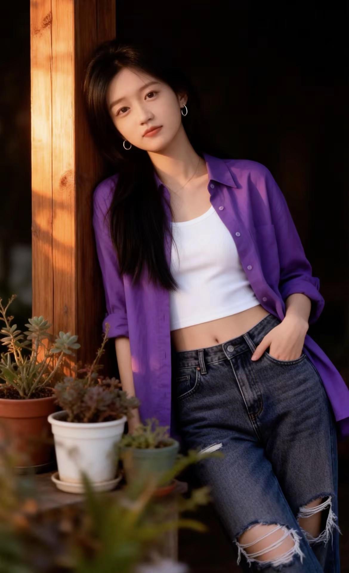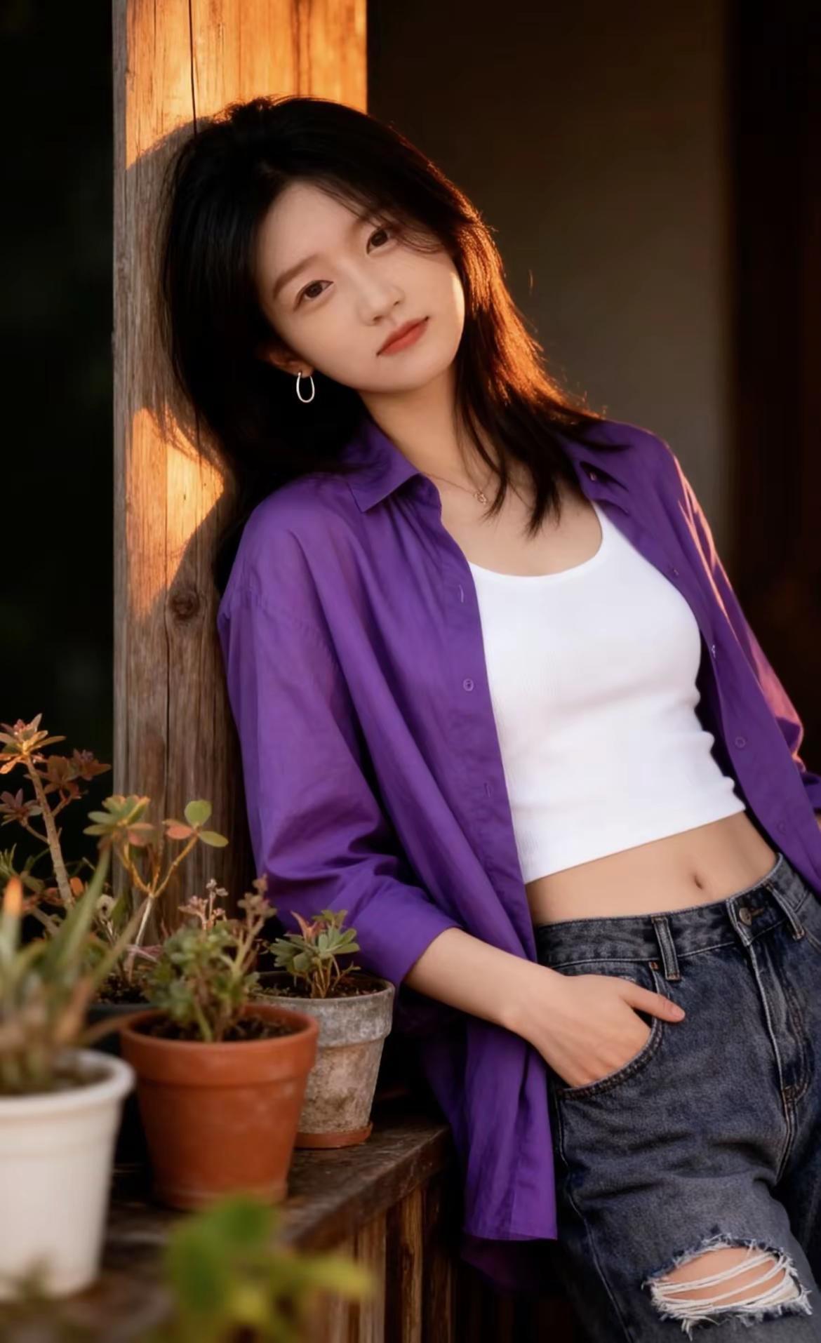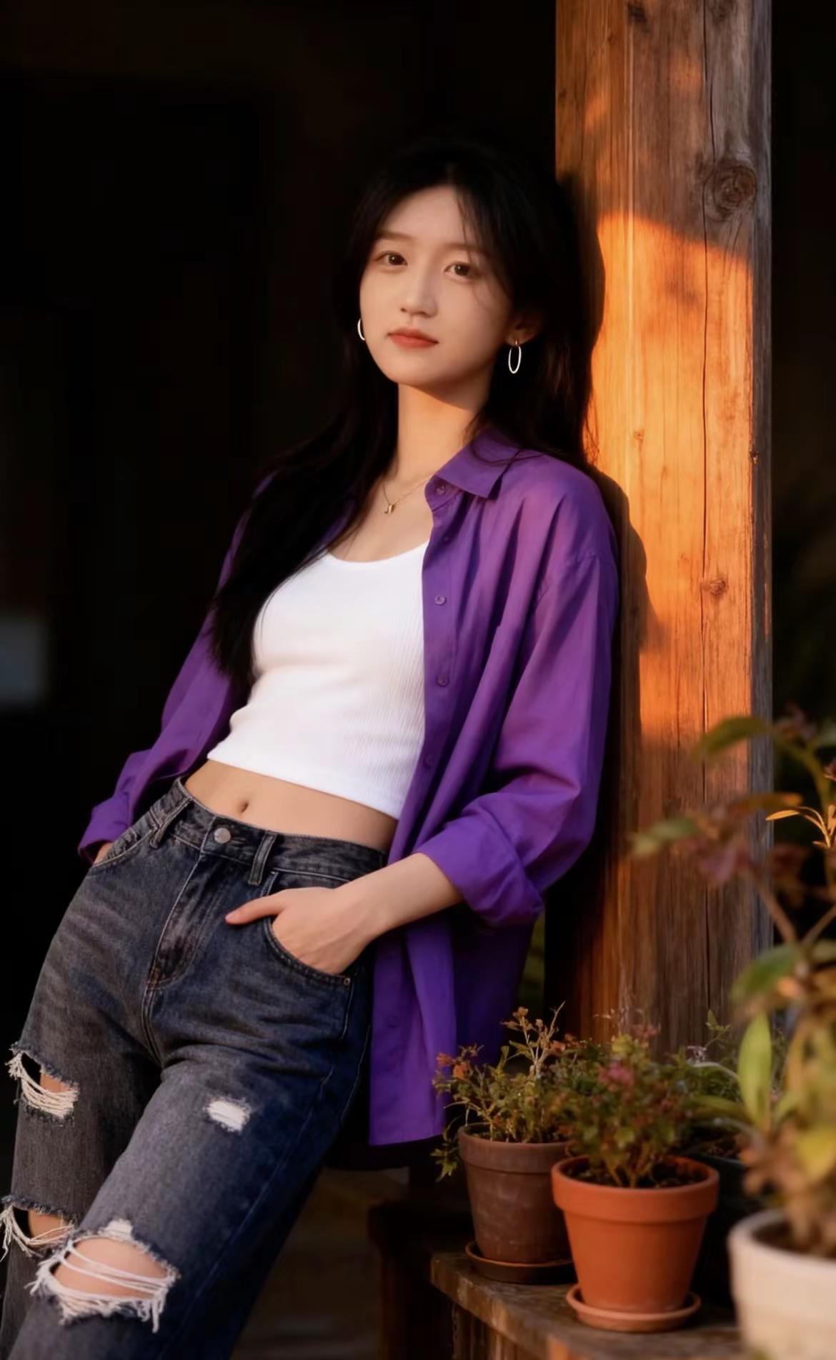 紫衬衫+夕阳,氛围感作弊了?分享 今日分享 穿搭 外拍