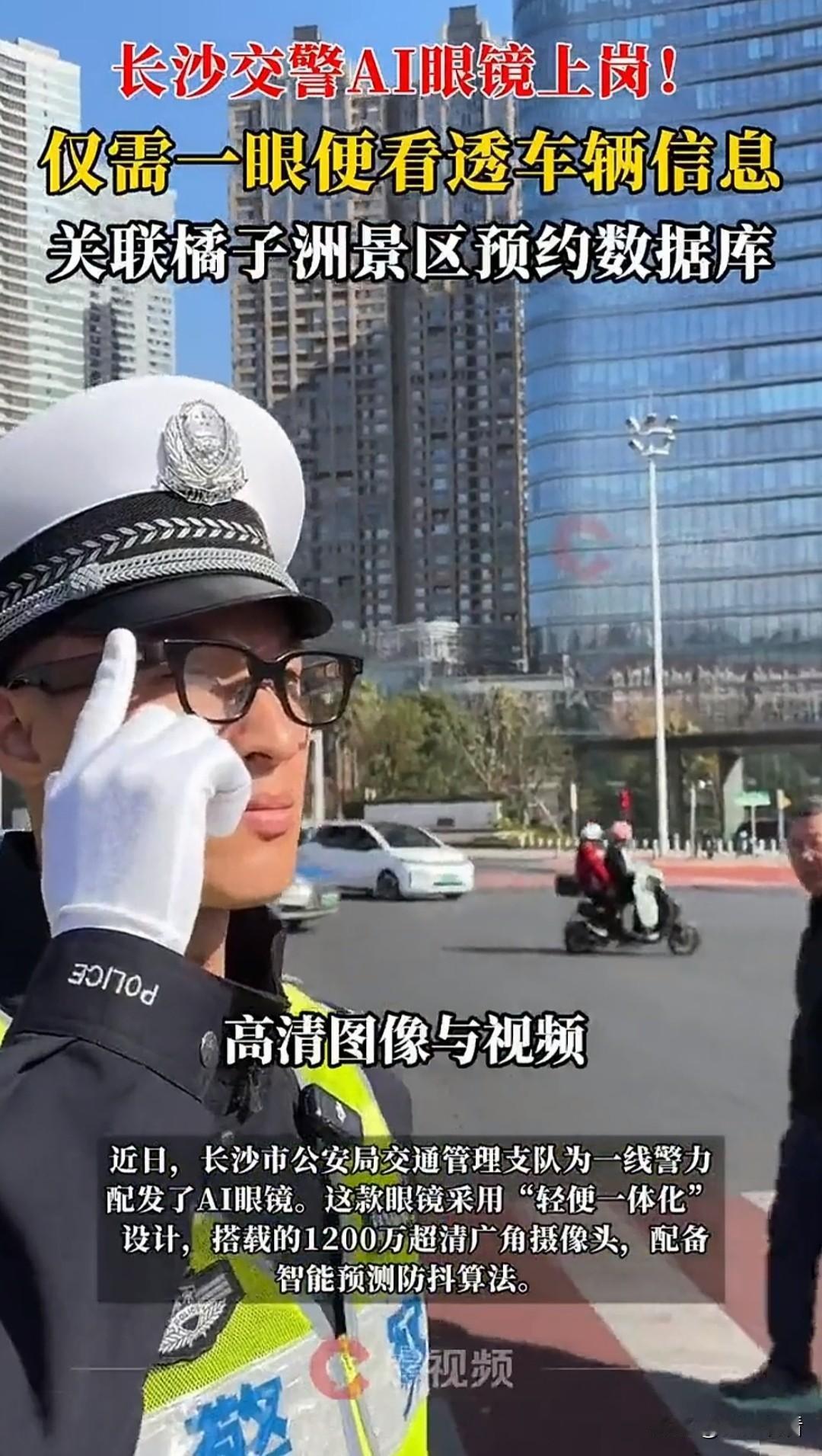长沙交警开挂了‼️AI眼镜执勤也太酷了吧🔥 长沙交警新装备直接拉满科技感,AI智能眼镜一上线,执勤效率翻倍还超便民,这波操作我直接夸爆✨ 再也不是印象里的传统执勤啦!长沙交警一线警力全新配发AI智能眼镜,轻便又专业,颜值和实力双在线,核心功能简直戳中刚需痛点,科技护路也太香了👏 ✅【橘子洲通行秒过神器】 以前去橘子洲高峰时段堵桥面、人工核对预约信息超费时间,现在民警戴AI眼镜执勤,2-4米内对准车辆,自动触发离线车牌识别+预约信息比对,联动景区数据库,已预约弹窗放行、未预约红灯预警,全程1-2秒搞定,效率直接提升80%🚗💨 不用停车等核对,抬眸间就能顺畅通行,游客少堵车、民警省力气,双向省心谁不爱! 🌐【涉外沟通零障碍】 长沙作为旅游热门城,外国游客问路、咨询交通超常见,以前语言不通超尴尬,现在AI眼镜一键解锁实时翻译!触控启动模式,民警说中文就能秒转英、日、韩等10+常用外语语音播报,问路、导航、讲交通规则全搞定,再也不用手忙脚乱查翻译,涉外服务贴心度直接拉满🌟 💡【硬核细节藏安全感】 搭载1200万超清广角摄像头+智能防抖,车流高峰、移动执勤都能精准捕捉高清画面,还能实时采集音视频,留存执勤关键线索,既规范执法,又给路面治理加了层“安全buff”~ 而且设计超轻便,民警长时间执勤也无负担,真正解放双手,专注守护路面安全✅ 我觉得长沙这波科技赋能交通也太给力了!有AI眼镜加持,通行更顺畅、服务更贴心,安全感和科技感直接拉满,为长沙交警打call💯