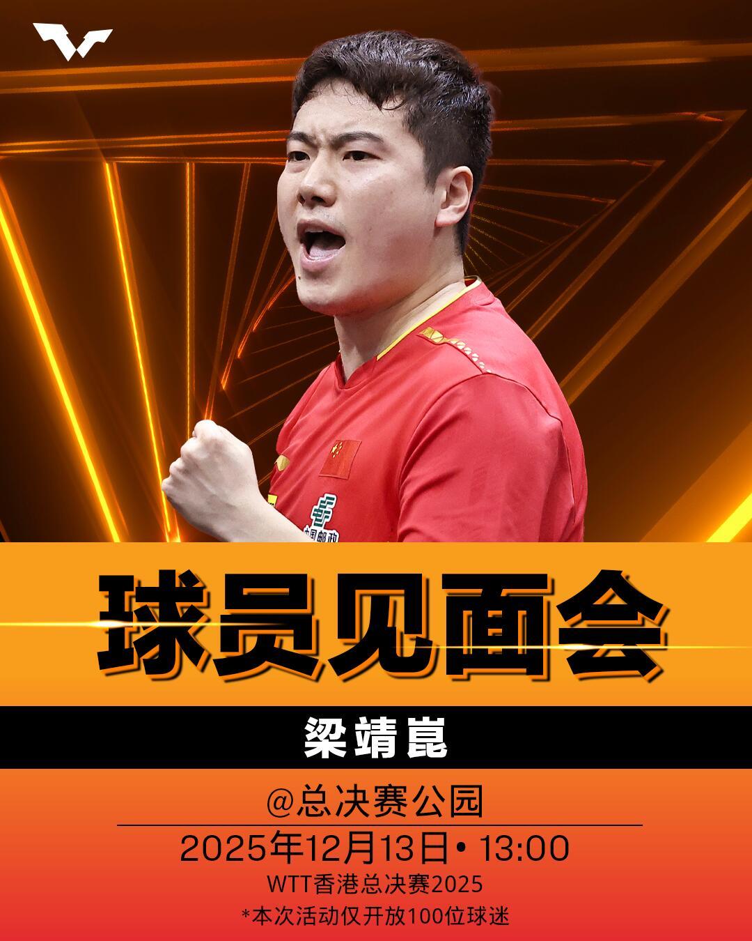 梁靖崑将于北京时间12月13日13:00在香港总决赛公园出席球员见面会