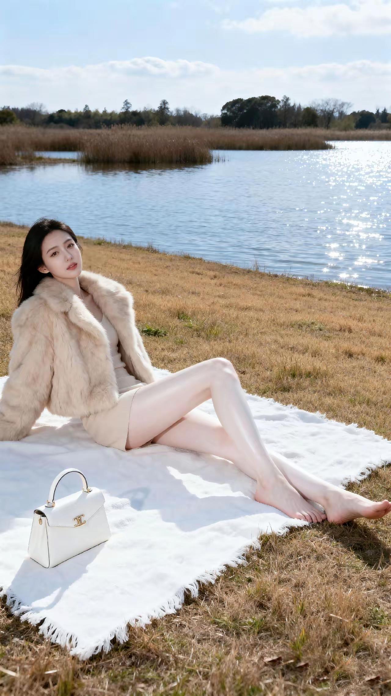 阳光下的野餐时光,白色毛毯与米色外套的完美搭配,尽显优雅与舒适。