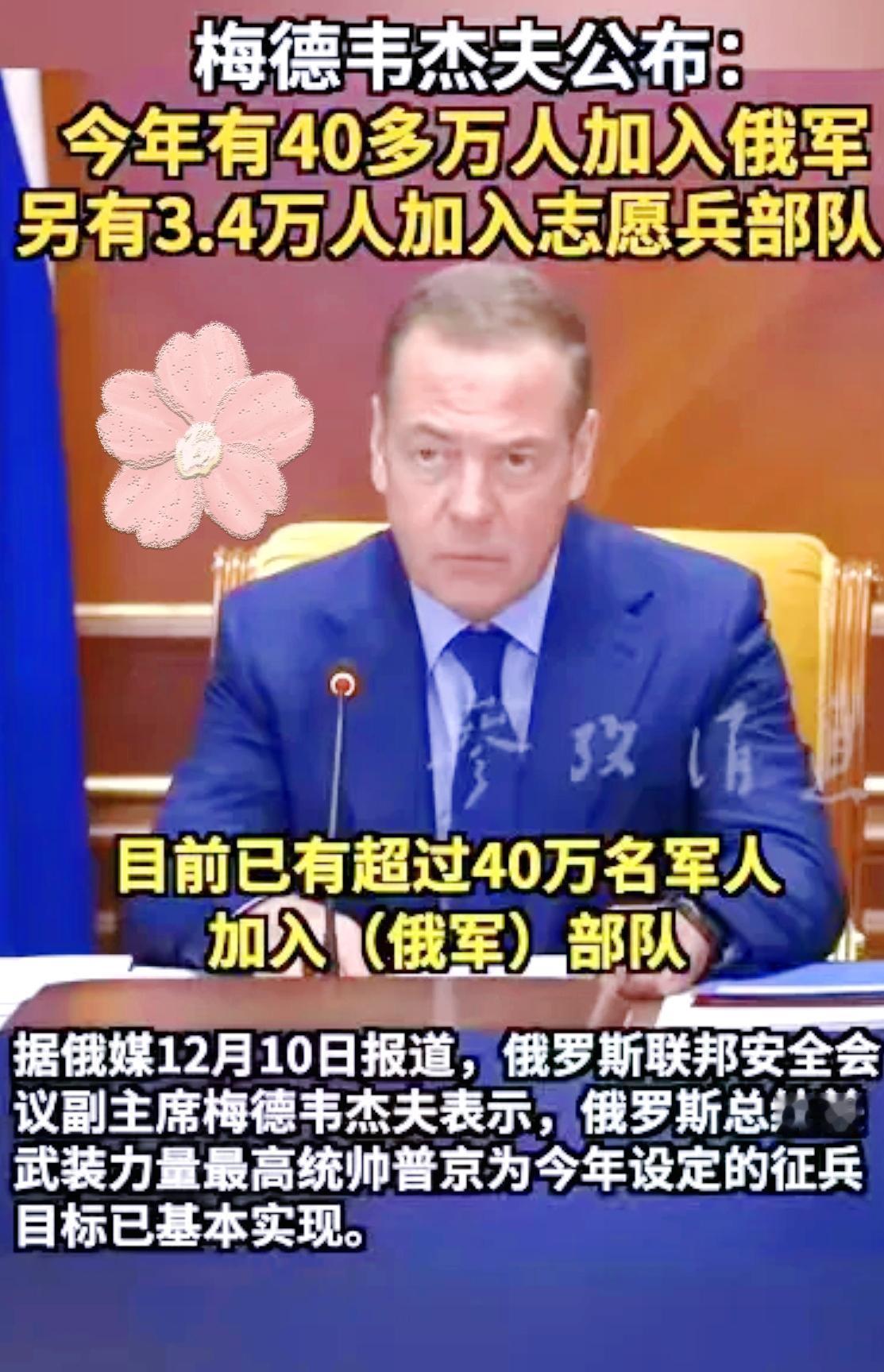 俄罗斯真是越打越厉害! 俄罗斯联邦安全会议副主席梅德韦杰夫在2025年7月透露,今年上半年已有超过21万名合同兵和1.8万名志愿兵加入俄军 。 这充分说明了俄罗斯的兵员补充态势良好,兵员问题无需担忧,俄军的兵力保障足以支撑相关军事行动。 梅德韦杰夫强调会妥善执行俄军兵员补充任务,而俄总统普京也明确表示,俄罗斯拥有足够的力量和手段推进特别军事行动,确保所有既定目标无条件实现 ,这彰显了俄军具备达成军事目标并持续扩大战果的能力。 俄总统普京近期也作出重要表态,俄罗斯一再重申无意与欧洲开战,但如果欧洲主动发起战争并付诸行动,俄罗斯现已做好充分应对准备 。 如此坚定的立场尽显俄罗斯的气势与底气,谁还敢小觑这个国家? 经过近4年的俄乌冲突,俄罗斯虽然在人员和装备方面付出了一定代价,但并未遭受动摇根本的重大损失,且冲突进程中,俄罗斯看清了西方国家在危机处理、战略协调等方面的诸多问题 。 当前俄军在战场占据战略主动权,展现出强劲的战力底蕴,也让外界看到其应对复杂安全局势的实力 。 对于俄乌冲突的调解,俄罗斯对特朗普政府推动和平解决的努力表示感谢,但坚持自身核心立场,未因美方方案而软化态度,也未向欧洲作出相关不侵犯承诺,始终以自身战略利益为根本,尽显大国实力与底气 。 看俄军这兵员补充力度,上半年20多万合同兵加志愿兵入伍,兵源压根不愁! 普京的表态也硬气,不挑事但绝不怕事,现在战场主动权也攥在手里。 俄乌打了快四年,俄军没伤筋动骨,还摸清了西方的短板,这底气确实不是吹的! 各位读者你们怎么看?欢迎在评论区讨论。