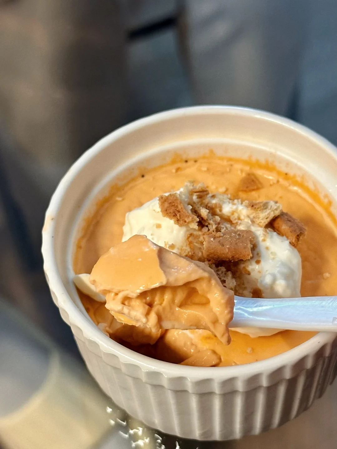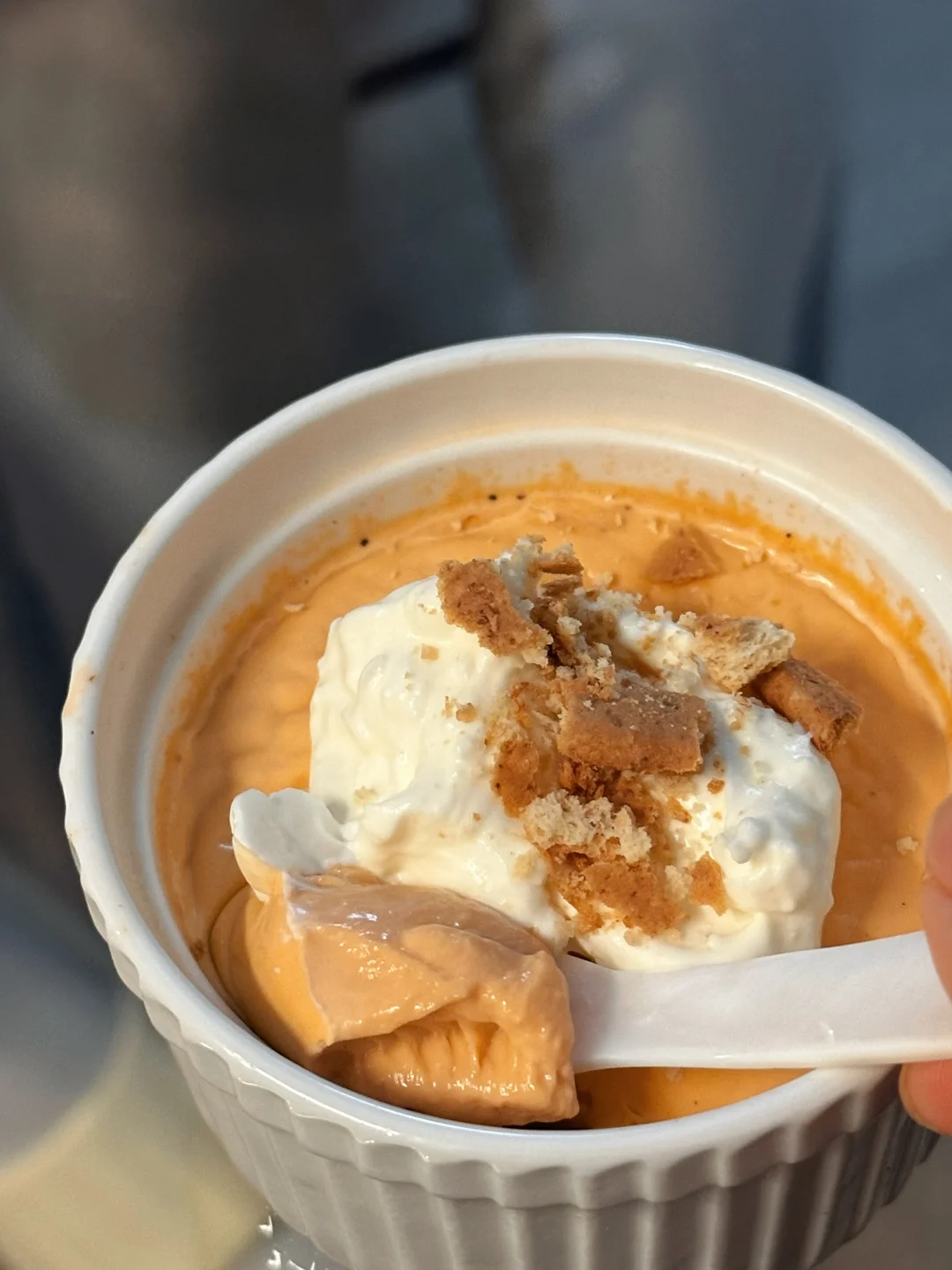 吃的时候可以用奶油奶酪和奶油1:1打发,并且搭配掰碎的焦糖饼干~