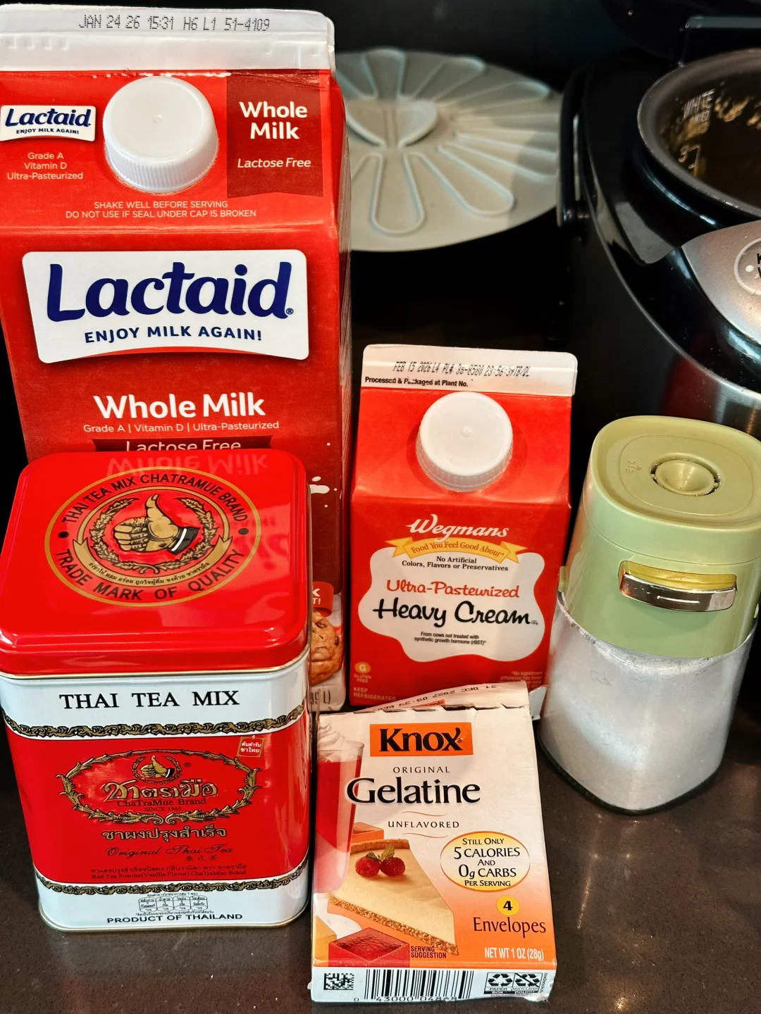 ➡️因为泰茶本身含糖,所以额外的糖不需要特别多。奶油量刚刚好creamy不腻,吉利丁刚好能凝结但不会太硬。
