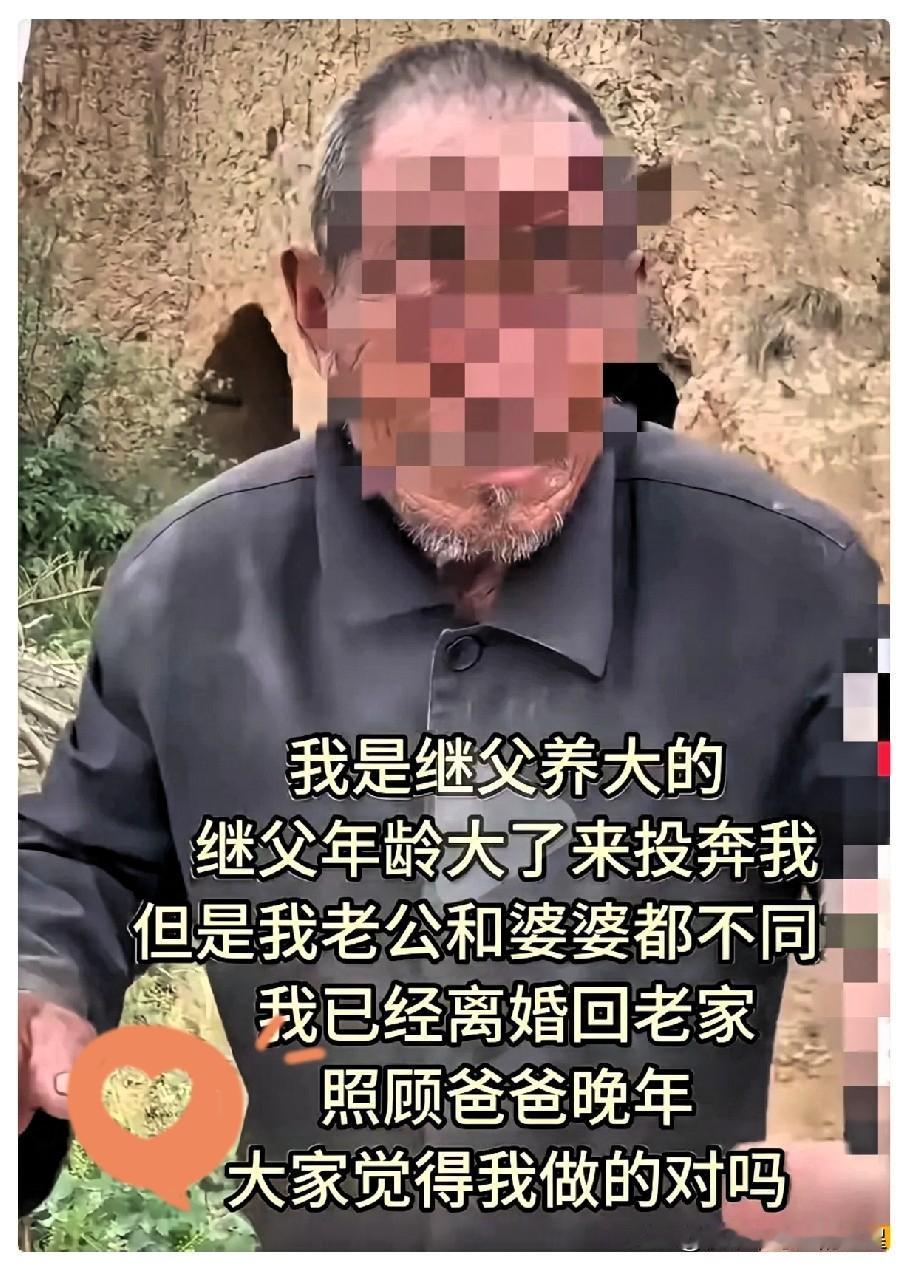 山东,一女子跟着继父长大,后来出嫁,继父失去劳动能力,便步行到女子家,想和女子一起生活,女子丈夫拒绝。为了感谢继父的养育之恩,女子离婚回家照顾继父。 山东女子赵喜花(化名)在不到一岁时,父亲去世。母亲再婚不久,也去世了。赵喜花的继父将她视如己出,悉心照顾她长大。 赵喜花长大后出嫁了,继父也到了老年,因病失去了劳动能力。继父想让赵喜花和丈夫带着孩子回家一起住,但赵喜花的丈夫不愿意。 赵喜花无法两全,为报答继父的养育之恩,她选择离婚,回家陪继父。 网友说,百善孝为先!继父没血缘却倾尽全力养她长大,她离婚尽孝不是傻,是懂感恩、有良心,这才是刻在骨子里的善良![玫瑰] 真正的亲情从无关血缘,而是你养我小、我陪你老的双向奔赴。 你身边有没有这样让人暖心的孝行?欢迎在评论区分享,一起为这份纯粹的感恩点赞 农村继父
