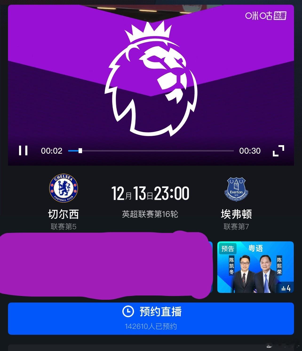 咪咕英超粤语直播英超 1月4日 1:30 伯恩茅斯VS阿森纳 解说:陈凯冬 何辉