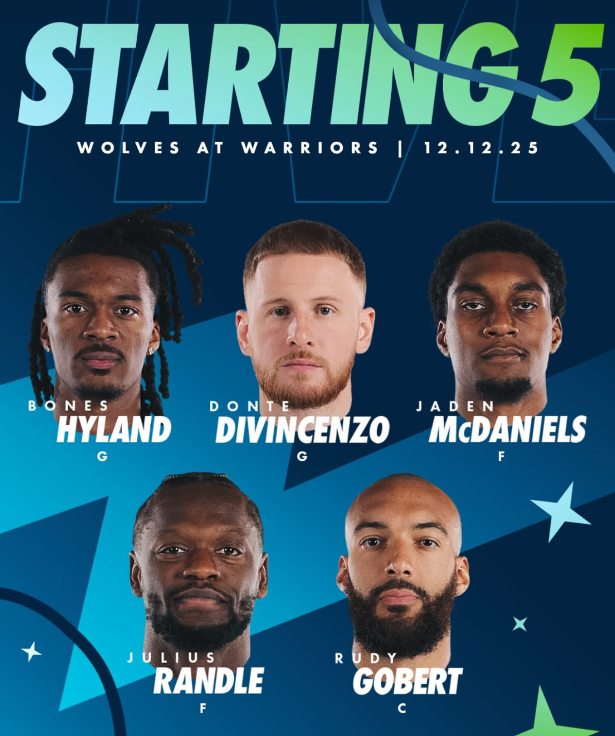 今日双方先发勇士:库里、斯潘塞、希尔德、巴特勒以及波斯特森林狼:海兰德、迪温琴佐、麦克丹尼尔斯、兰德尔、戈贝尔勇士vs森林狼