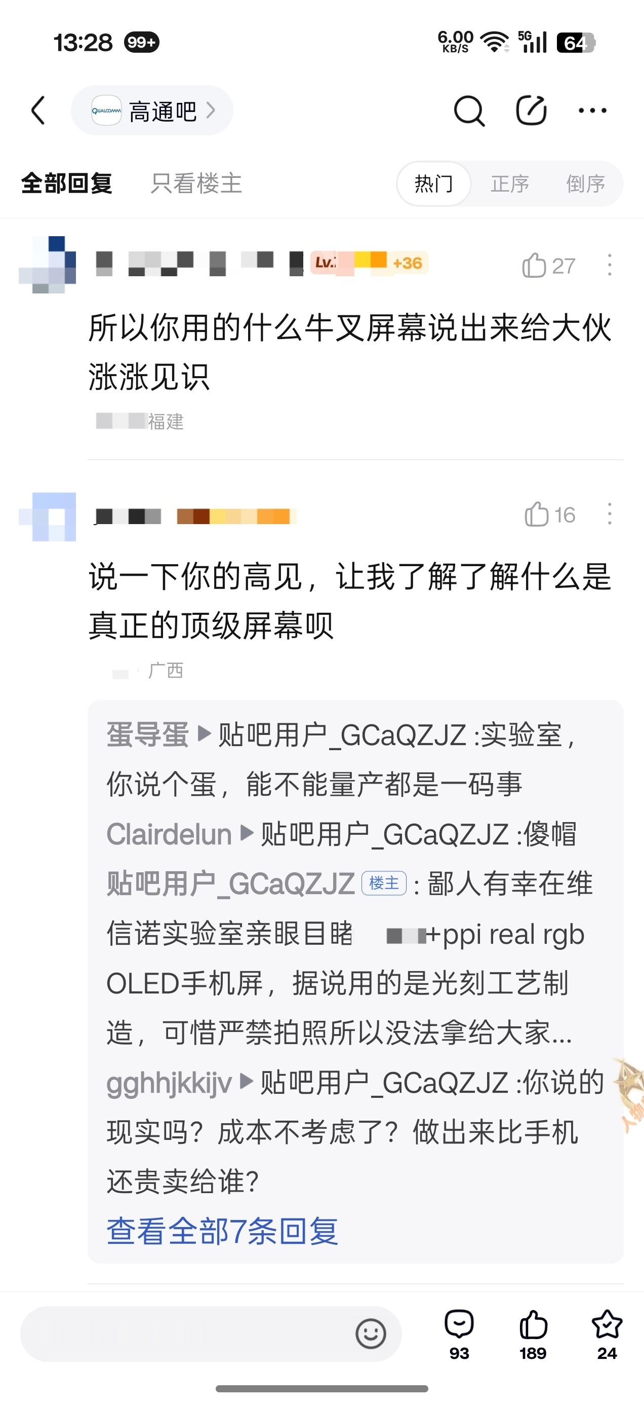 刷了一下手机吧,感觉全球范围内都找不到能用的手机屏幕了。这吧很多网友太逆天了,我觉得很好的屏幕,在他们眼里都是垃圾。。。