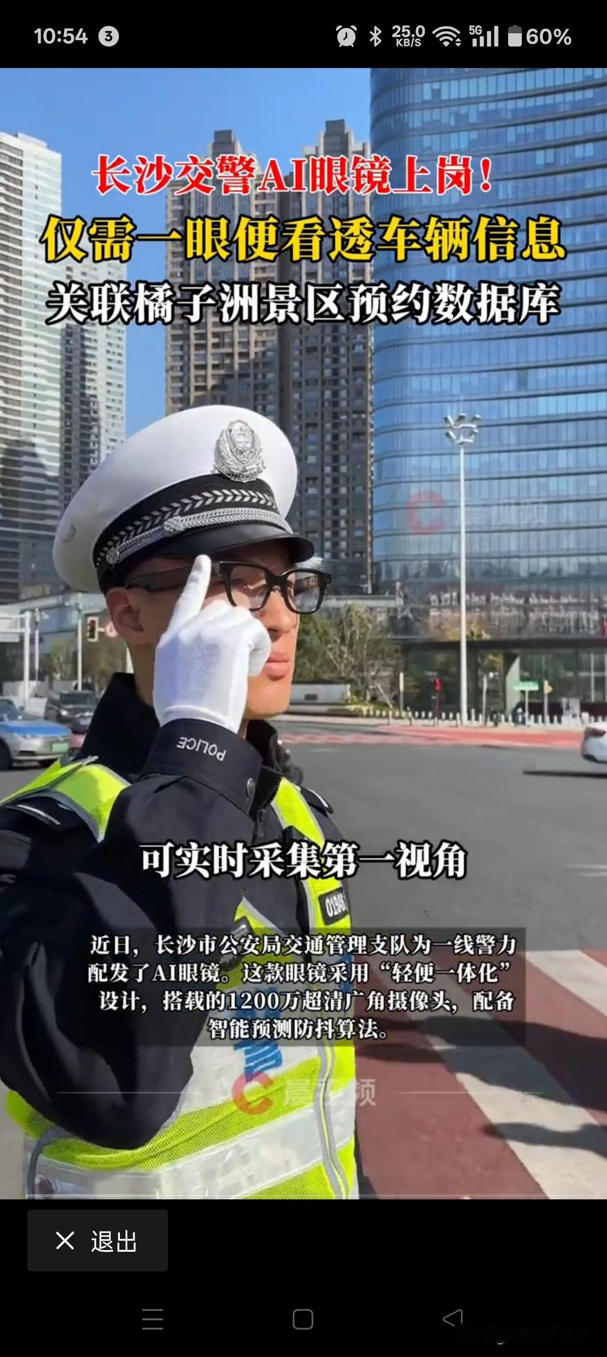 长沙交警配发AI眼镜,是科技赋能城市治理的生动实践。这款“执勤神器”以秒速识别车牌、实时翻译等功能,让景区核查效率提升80%,既破解了拥堵难题,又打通了涉外沟通壁垒。它不仅减轻了交警执勤压力,让执法更精准高效,更以科技温度提升了市民与游客的出行体验。这背后是城市治理现代化的进阶,彰显了用新质生产力筑牢安全防线的治理智慧,为智慧城市建设提供了鲜活范本。