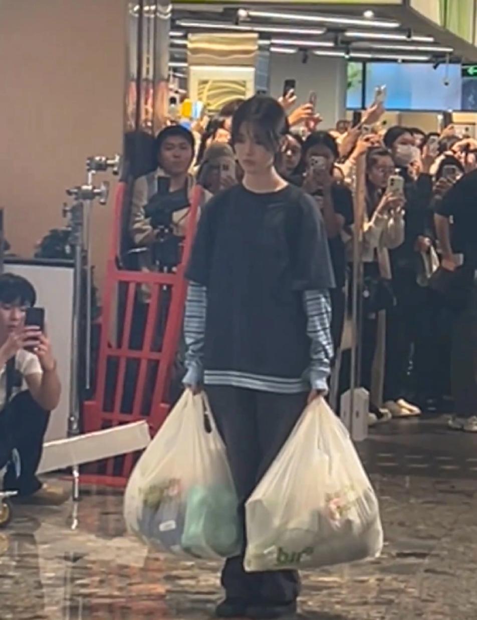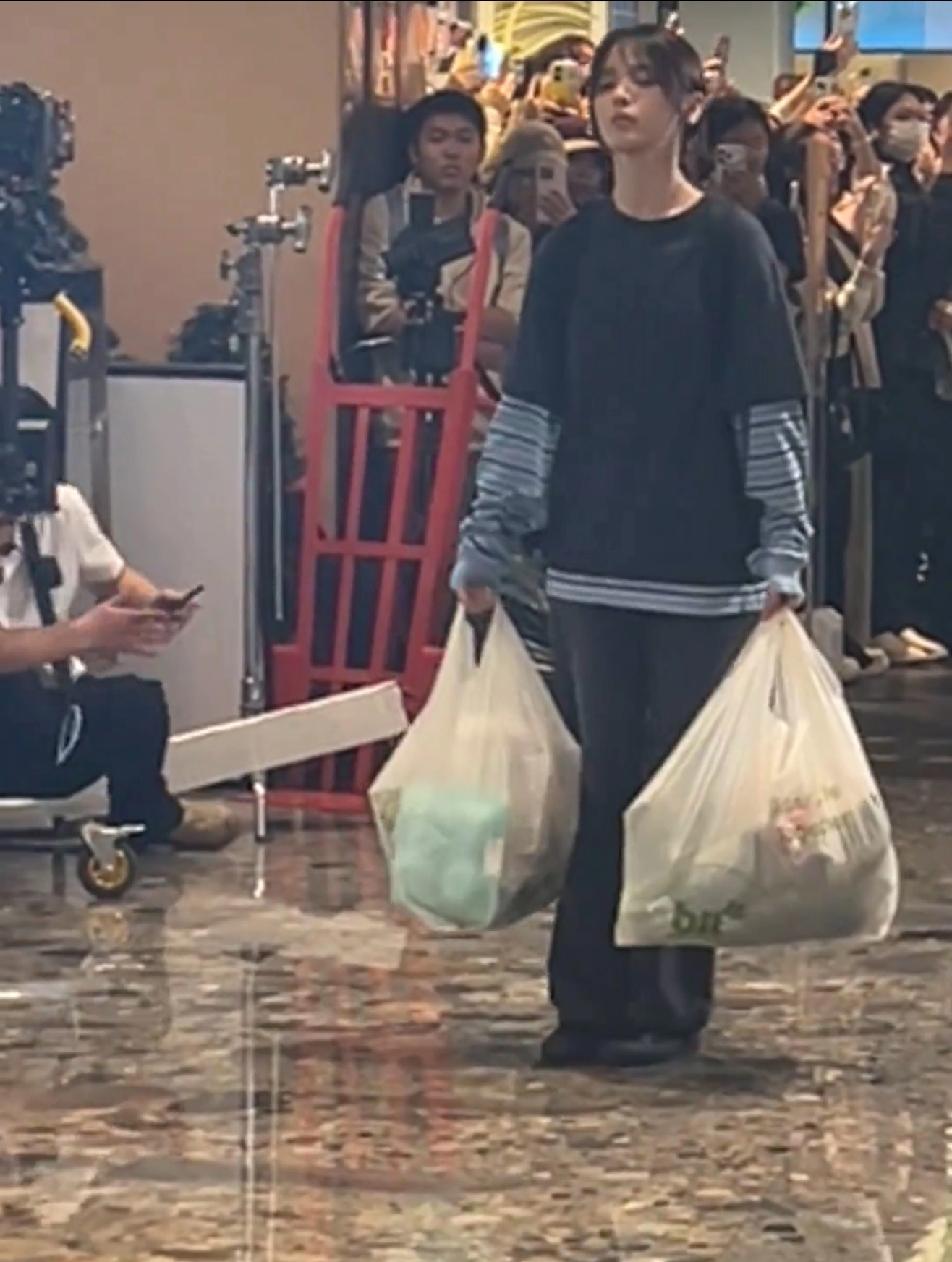人靠衣装在杨超越身上不成立!杨超越是衣靠人装才对,再糊再没有任何技巧的原片也能看出她是一个大美女,粉丝偶遇的随手一拍也好,拍摄的花絮也好,杨超越都是美美的!身上穿的就是普通到不能再普通的衣服,黑灰蓝加大平底鞋,可就是很对味儿,怎么都好看,完全靠颜值撑起衣服,第一次深刻感受到凭着美貌硬闯娱乐圈的实力!杨超越
