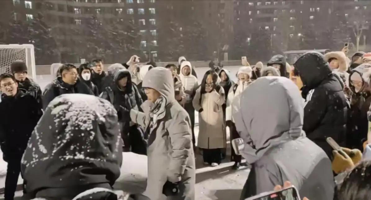 北京初雪夜,银装素裹的城市迎来了今年的第一场雪。在这浪漫的夜晚,数百名清华大学的
