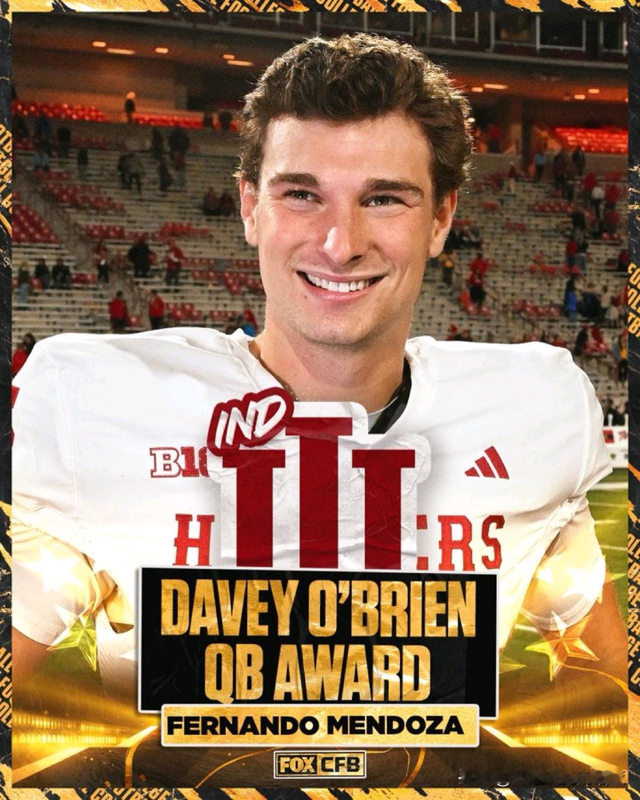 印第安纳大学Fernando Mendoza荣获Maxwell全美最佳球员与Davey O’Brien年度最佳四分卫,Curt Cignetti连续两年赢得最佳教练奖,圣母大学Jeremiyah Love拿到Doak Walker最佳跑卫,USC的Makai Lemon则是Biletnikoff最佳外接手,范德堡Eli Stowers当选最佳近端锋John Mackey。