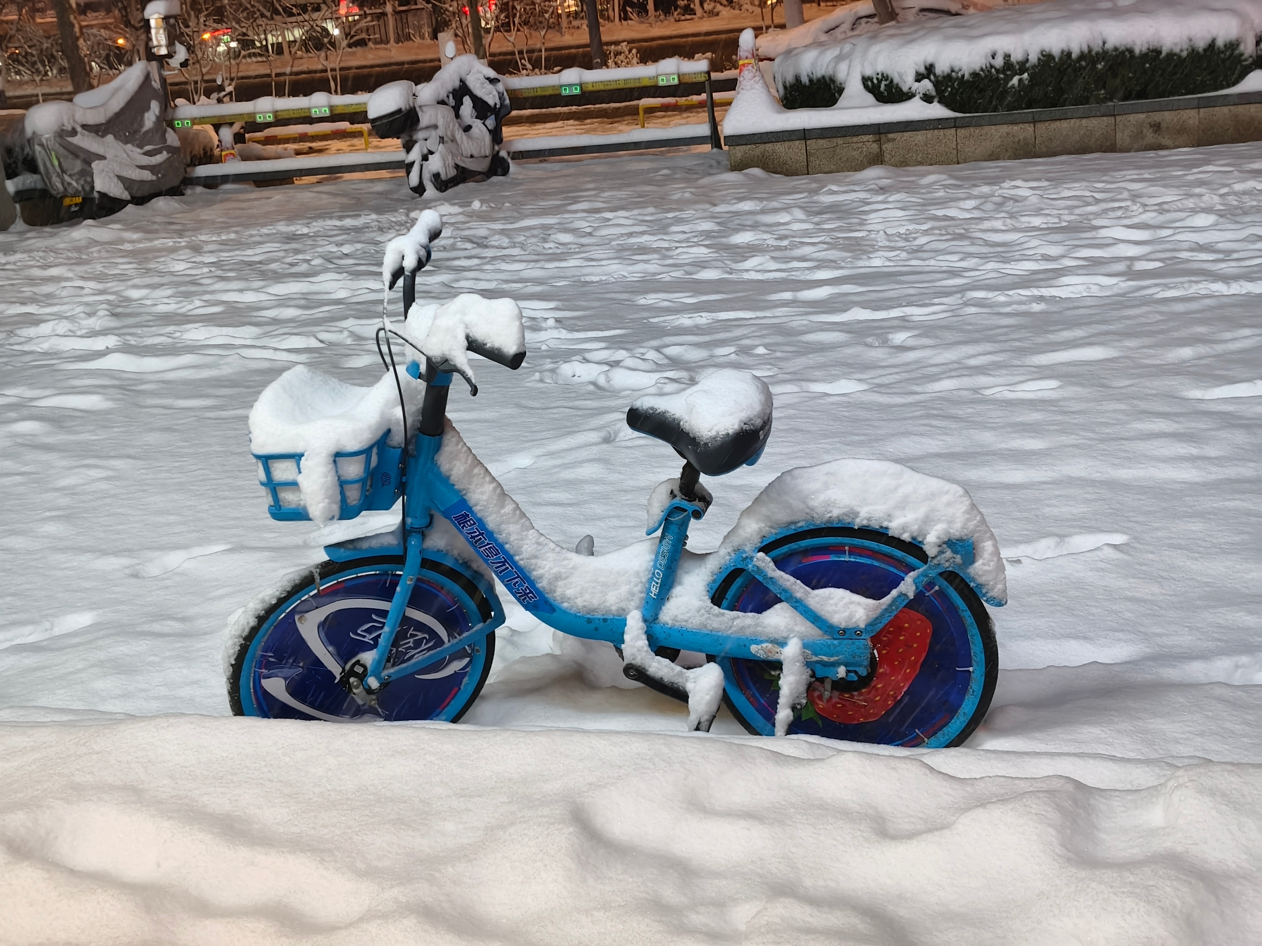 山东最大积雪深度16cm差不多,这是昨晚拍的,今天上午又下了好几个小时