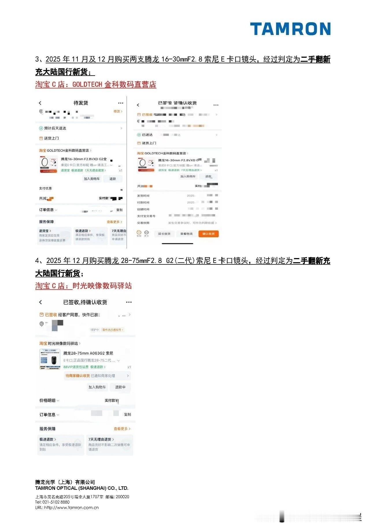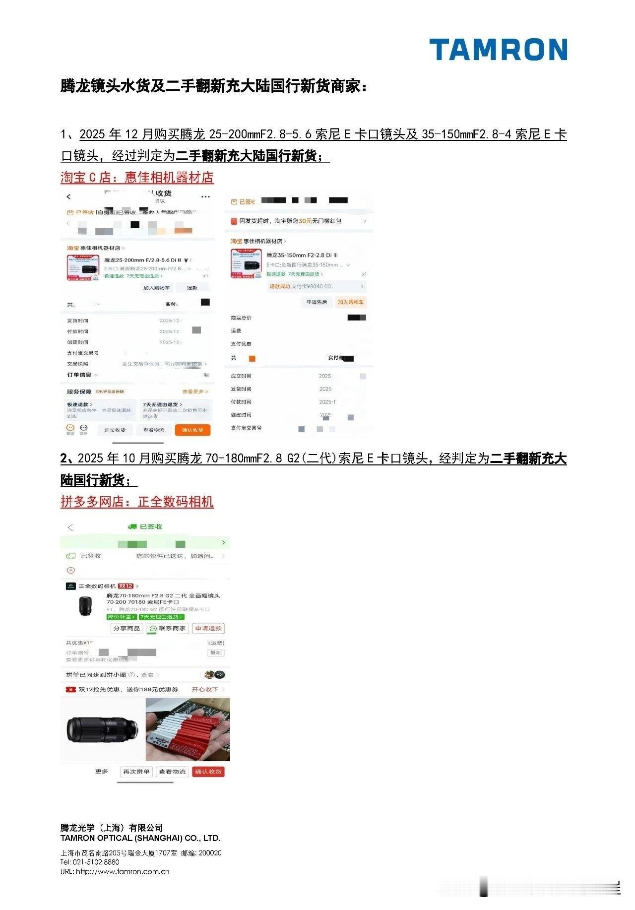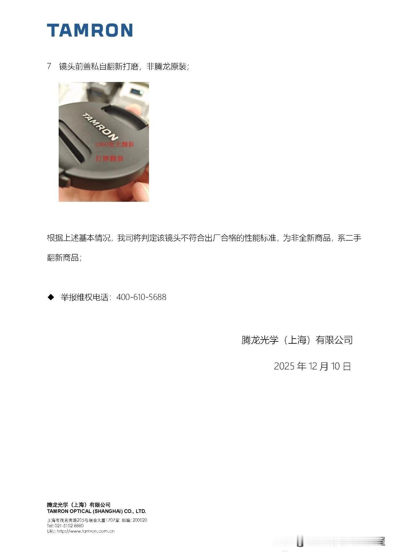 近日,腾龙公司发布最新公告,是关于市场上出现二手翻新以及水货充国行腾龙镜头的郑重声明。 声明中表示,将会严厉打击这类行为,保证大家的权益,另外,官方也附上了相关辨别方法。