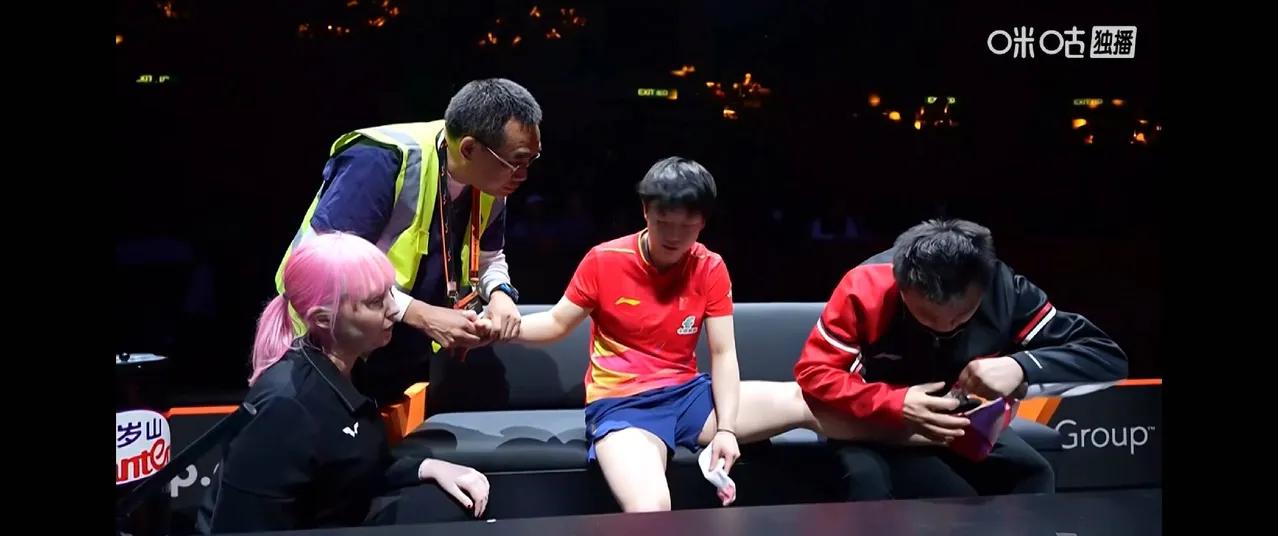 WTT香港总决赛莎莎因伤退出女单半决赛,休息了一会又上场混合决赛对韩国的林钟勋/申裕斌,看到莎莎带伤上场更为她难过了,心里特别不好受,傻孩子就不会说不吗?为外战混双放弃了内战女单,永远是责任担当为国争光是第一位的,看台上的教练队友,领导,看到莎莎受伤都很心疼,输赢莎莎都做到了问心无愧。
