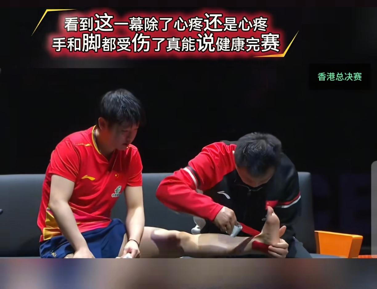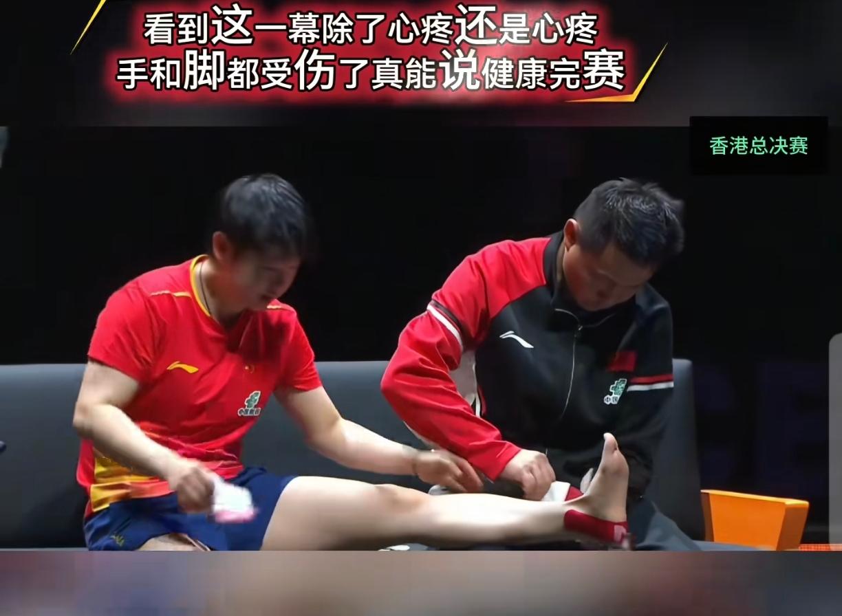 今晚的乒乓球比赛看着太揪心了,莎莎在和蒯曼的比赛中脚受伤了,叫了医疗暂停,队医进行了紧急处理,脚上也打上了绷带,但是还是无法坚持比赛,莎莎选择了退赛,可能是因为女子单打四强都是中国队吧,谁夺冠都是中国的,所以莎莎退赛了,这样蒯曼就直接晋级,明天和曼昱一起争夺冠军。 今天莎莎是一日三赛,单打选择退赛,经过短暂休息后,坚强的莎莎还是王楚钦一起站上了赛场,对战韩国组合,虽然最后莎头还是0:3输了(9:11 8:11 6:11 ),但是请大家不要黑她,这么努力的小姑娘,已经很不容易了,频繁的赛事给运动员带来了太多伤病,如果健康跟冠军之间,我宁愿选择她健康!(图片来源于网络侵删)