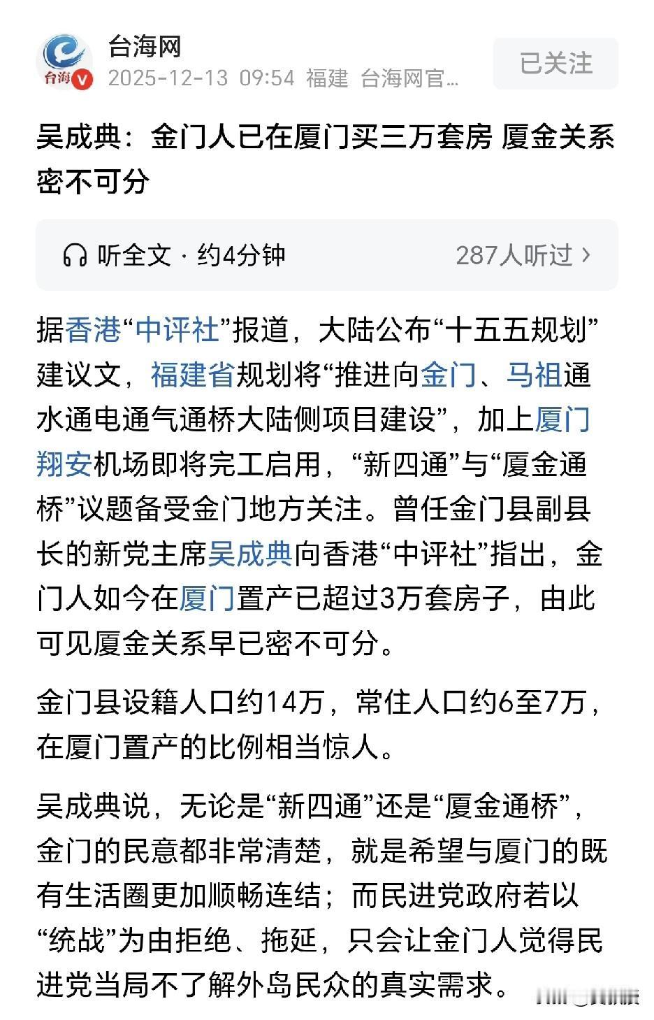 金门人 就是福建人 他们从来不认为自己是台湾人 不管谁来金门选举 都是亲大陆的当选 因为金门的自来水都是泉州供应的 有一次,我到金门大学交流 问年轻的大学生,你们周末都去哪玩? 去台北吗?他们说,老师,为什么要去台北?我们到厦门最近了[捂脸] 金门到厦门,来回轮渡⛴,也就一百多块钱,比到台北便宜多了 金门是一个小县城,比较适合安静的居住