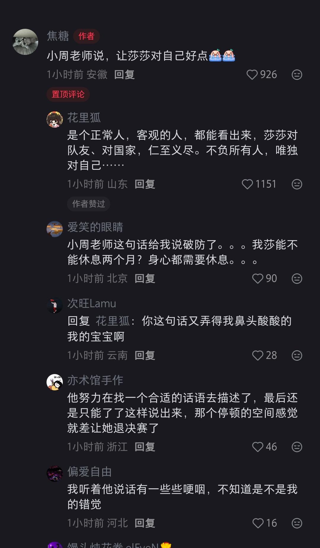 王励勤后台关心孙颖莎。 莎莎因比赛中脚踝受伤,中途退赛了。除了忙前忙后的德华、邱贻可、肖战,第一时间关注了莎莎。还有王励勤。 有人说,王励勤坐在看台都没有表情,其实不是的,网友拍到他去后台了,接到莎莎就关心的问她伤势和状态。能看到他脸上的着急和关心。 作为国乒的顶梁柱。王励勤还是给予很大的关注。 不过莎莎虽然退赛了,好在已经锁定单打金银牌了。 接下来,莎莎就好好休息吧,对自己好点。