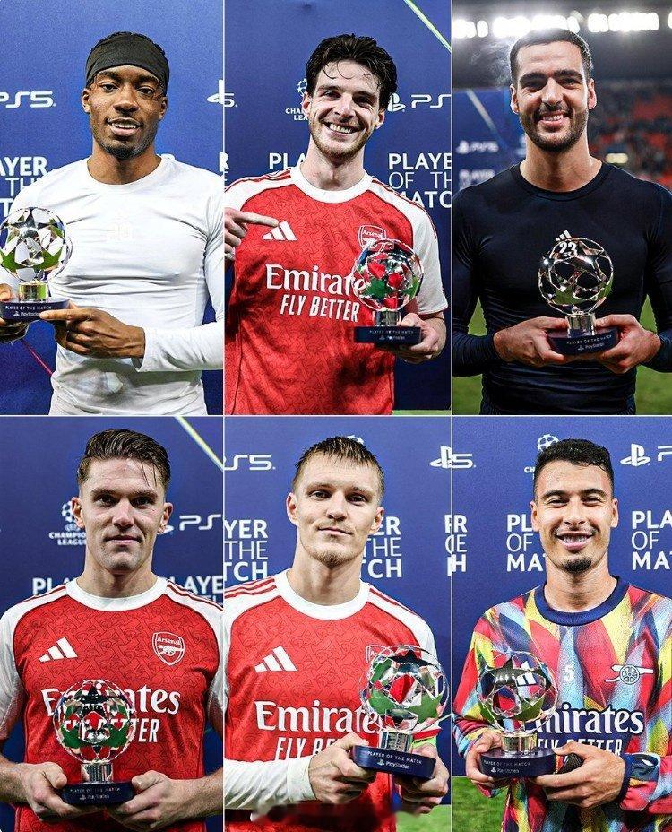 多点开花!!!本赛季阿森纳欧冠6战全胜,队内6名不同球员分别当选官方全场最佳球员