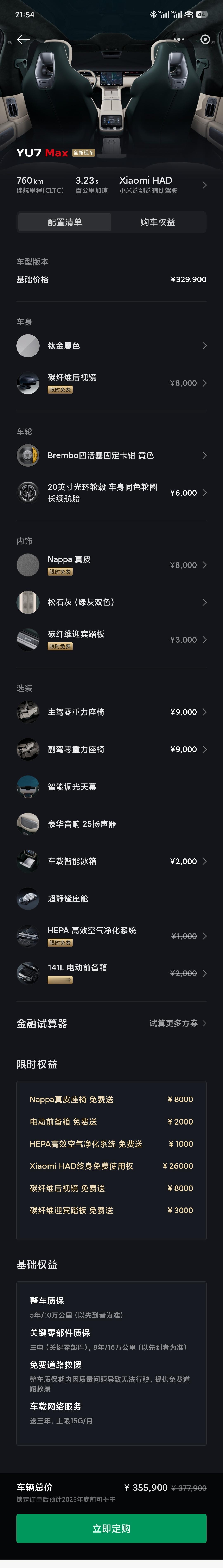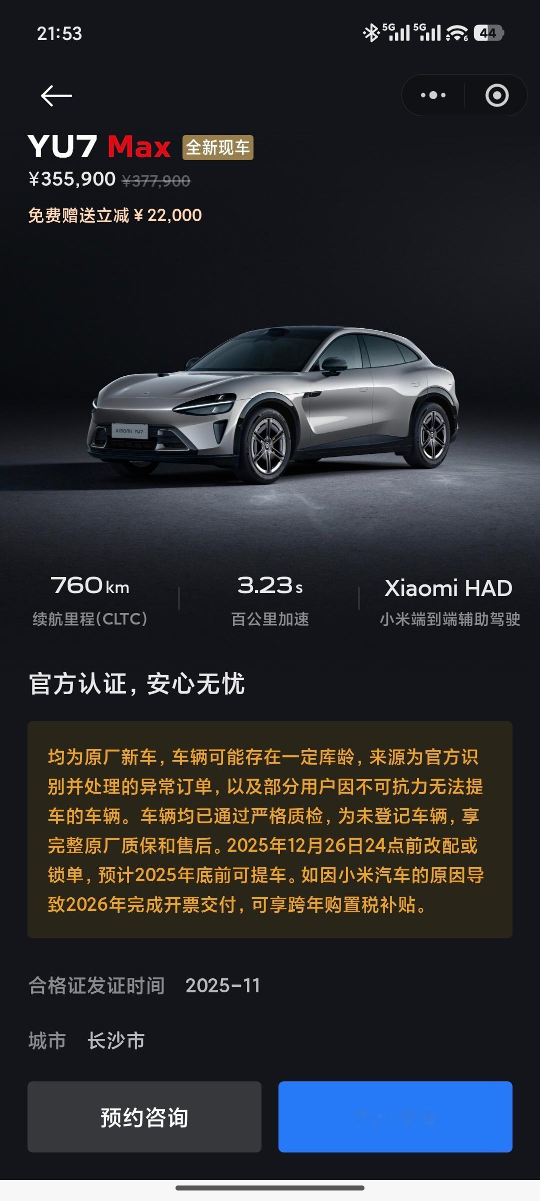 小米YU7准新车便宜近1万元这一台现车,真的动心!一堆权益,而且是我喜欢的钛灰色,很不错!