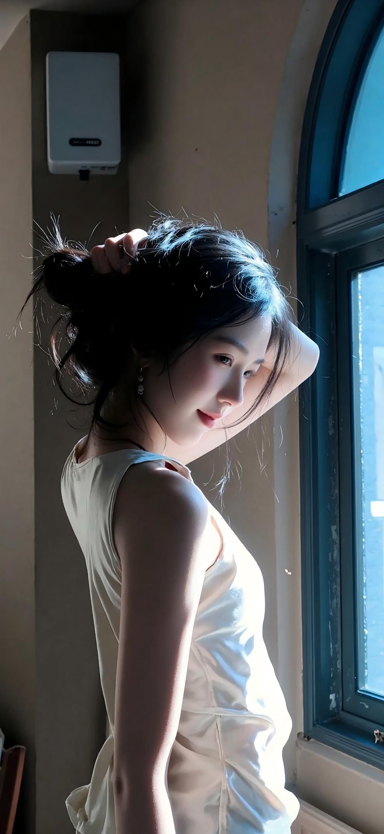 藏青色里,东方风骨这袭旗袍,中式顶配青丝如瀑随风舞,娇荣似雪韵自来。纤腰