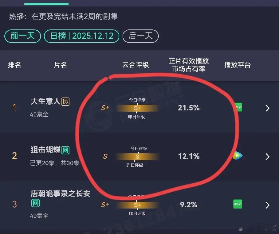 陈晓 陈妍希宿命感太强了,官宣离婚没多久,居然成了竞争对手,云合排名第一,第二。本来嘛陈晓的《大生意人》是平台大制作,预定爆款。陈妍希主演的《狙击蝴蝶》小成本制作。看投资成本,两部剧应该没有关系,结果爆款中规中矩,小成本成了小黑马。都很意外。