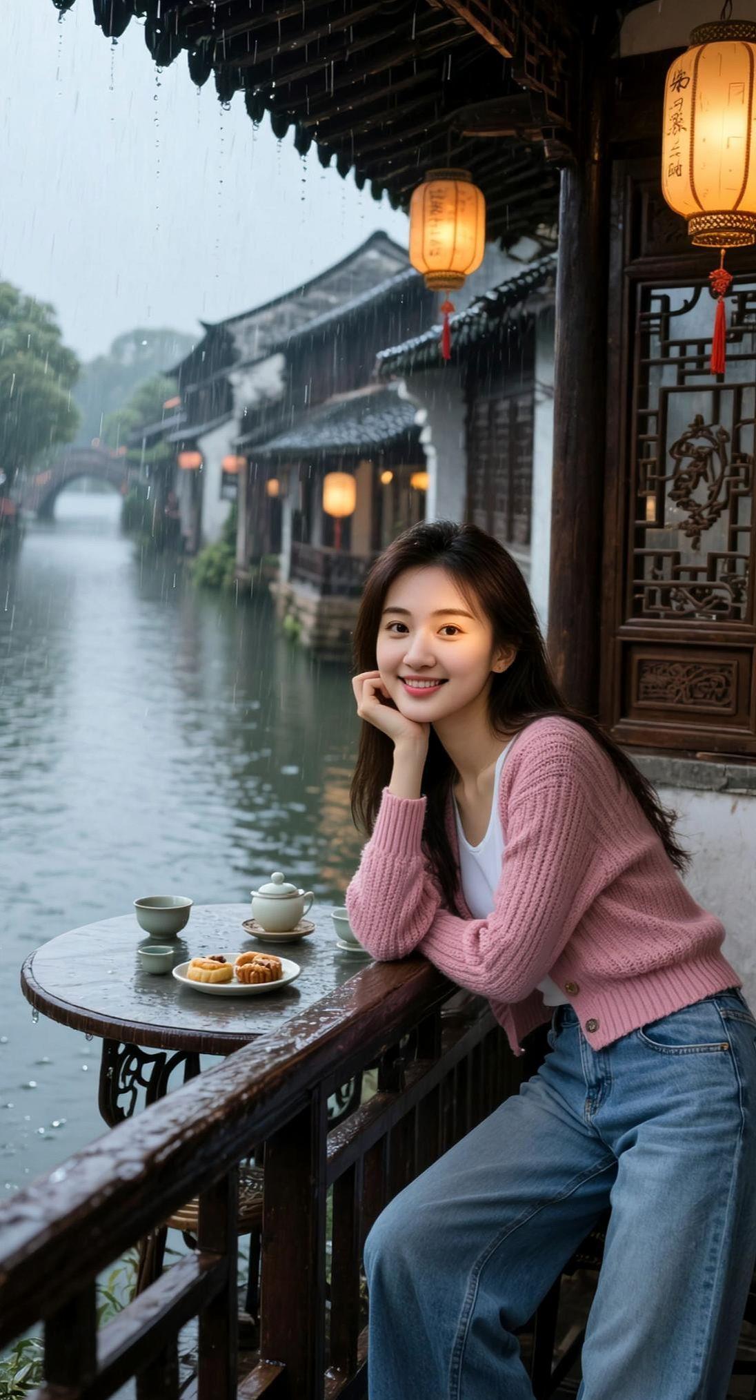 水乡下午茶照高颜值美女