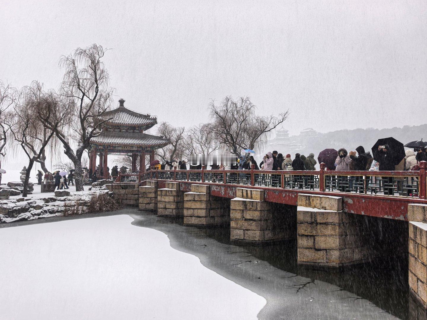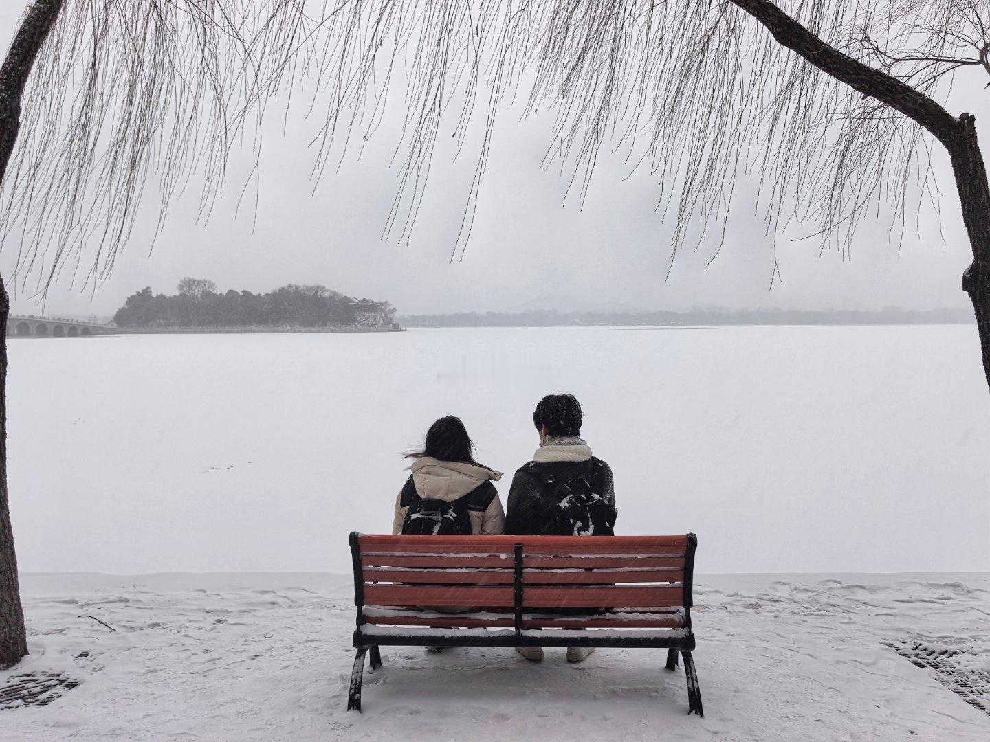 〖陶然冬暮,人间暖色〗 冬日傍晚,陶然亭浸在温柔的橙光里,桥上一对