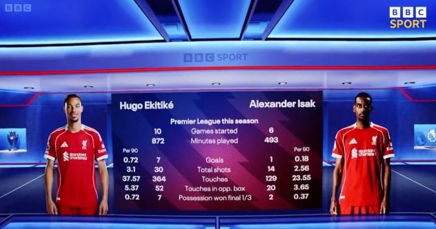 赛后BBC盘点埃基蒂克与伊萨克本赛季英超数据对比(埃基蒂克在前):