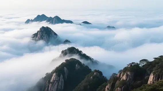 云雾缭绕的仙境, 宛如一幅流动的水墨画。 山峦在云海中若隐若现, 仿佛是仙人遗落在人间的玉簪; 雾气如轻纱般缠绕林间, 每一次呼吸都带着草木的清新。 阳光穿透云层,洒下斑驳的光影, 将天地万物都染上一层梦幻的色彩。 这里没有尘世的喧嚣, 只有静谧与祥和, 让人不禁沉醉在这片缥缈的仙境之中,流连忘返。