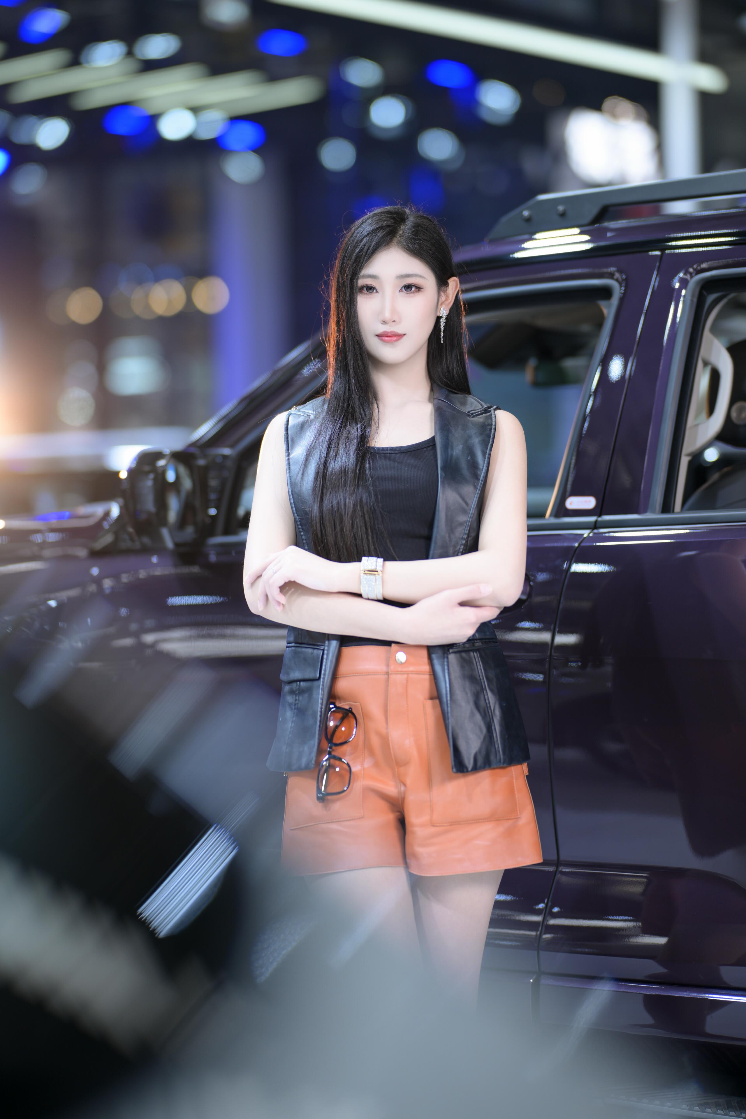 江疏影以齐刘海+黑框眼镜的全新造型亮相PORTS活动,搭配黑色短裙与丝袜,风格酷