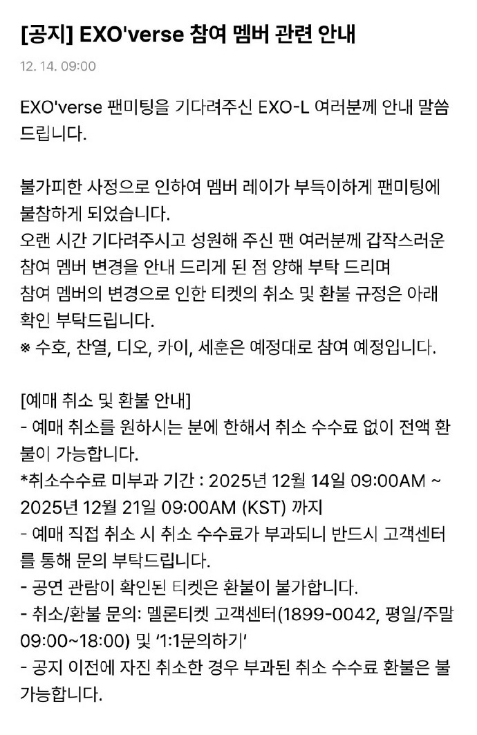 张艺兴缺席EXO见面会 据韩媒,张艺兴因不可抗力因素将不得已地缺席EXO见面会,好可惜!