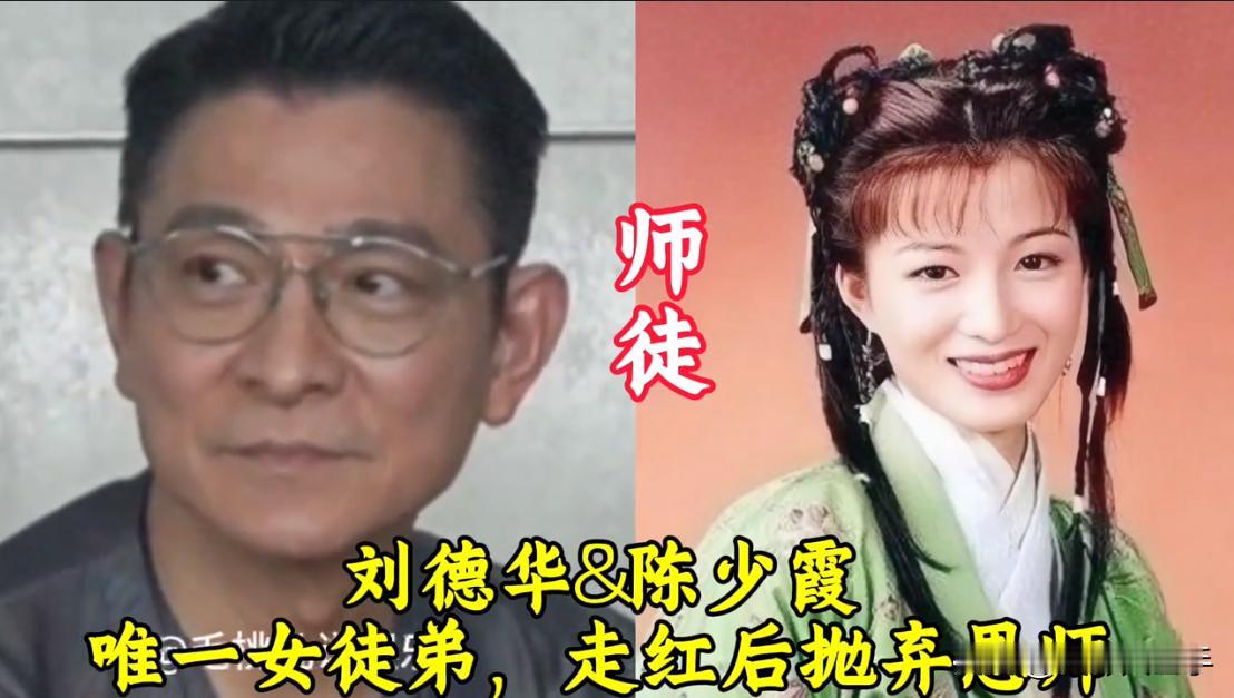 低调少有被外界知晓的17对明星师徒。 有人凭借师父走红,有人与师父反目。 有人年纪轻轻,英年早逝。 名师出高徒,进入演艺圈内的明星除了自身的努力和资源外,拜一位名师亦是能够多一条路,在师父的庇护的之下,很多演员因此改变了命运。 香港的女星陈少霞,刚刚入行不久就拜了刘德华为师,在师父的栽培下,陈少霞很快声名鹊起,接到的都是刘德华为她量身打造的大女主剧本,风光无限,然而因为损友的撺掇,改变了刘德华为她树立的清纯女孩形象,害的师傅投资的电影赔了几千万,俩人也因此闹掰。 离开了刘德华后,陈少霞两次嫁入了豪门,成为阔太。 之后陈少霞多次通过媒体像刘德华道歉。