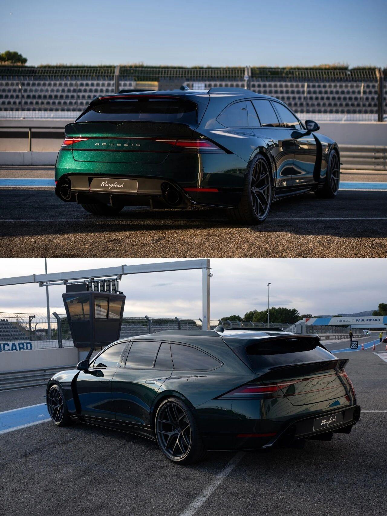 捷尼赛思日前终于发布了Magma高性能部门年度力作G90 Wingback旅行车概念车的官图。捷尼赛思G90 Wingback车头保留了捷尼赛思G90三厢版标志性的盾型前格栅、分体式双层车灯、抛物线线条等设计元素,并在此基础上增加了导流孔、风刀、宽体套件和宽体套件,侧面线条修长优雅,比例恰到好处,车尾则采用双尾翼搭配运动风格扩散器强化运动属性。尺寸方面,官方公布的捷尼赛思G90 Wingback长度为5.1米,轴距为3.2米。作为参考,捷尼赛思G90标轴版长宽高分别为5275/1930/1490mm,轴距3180mm。豪车超跑
