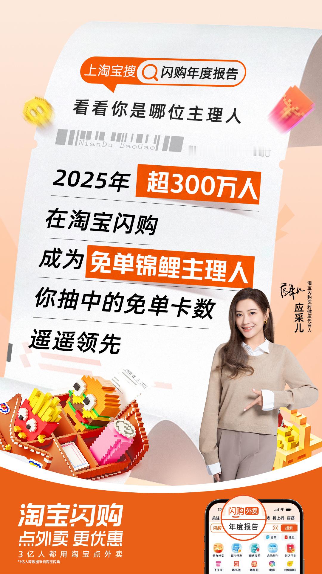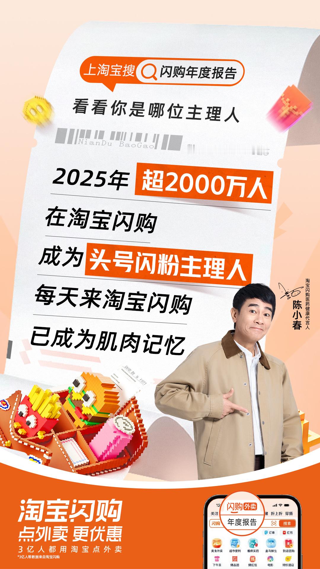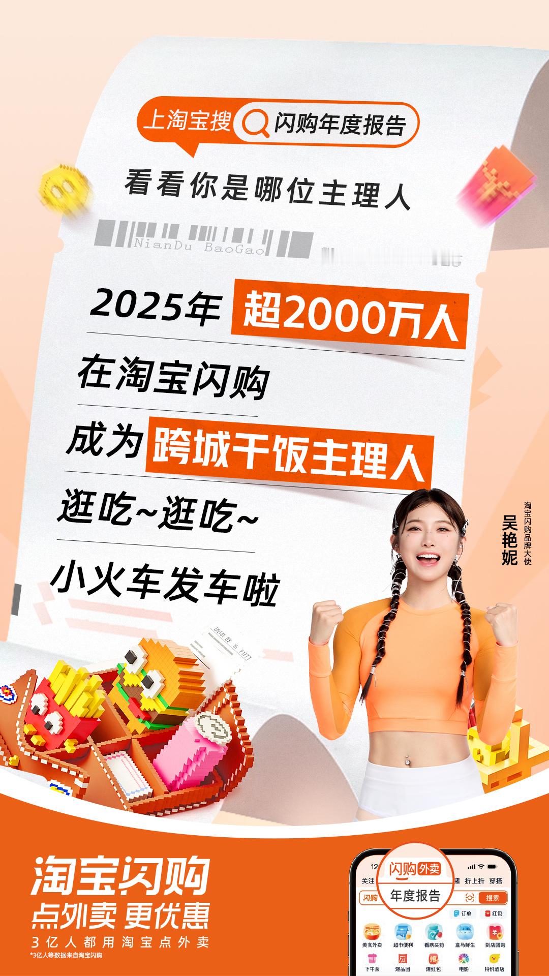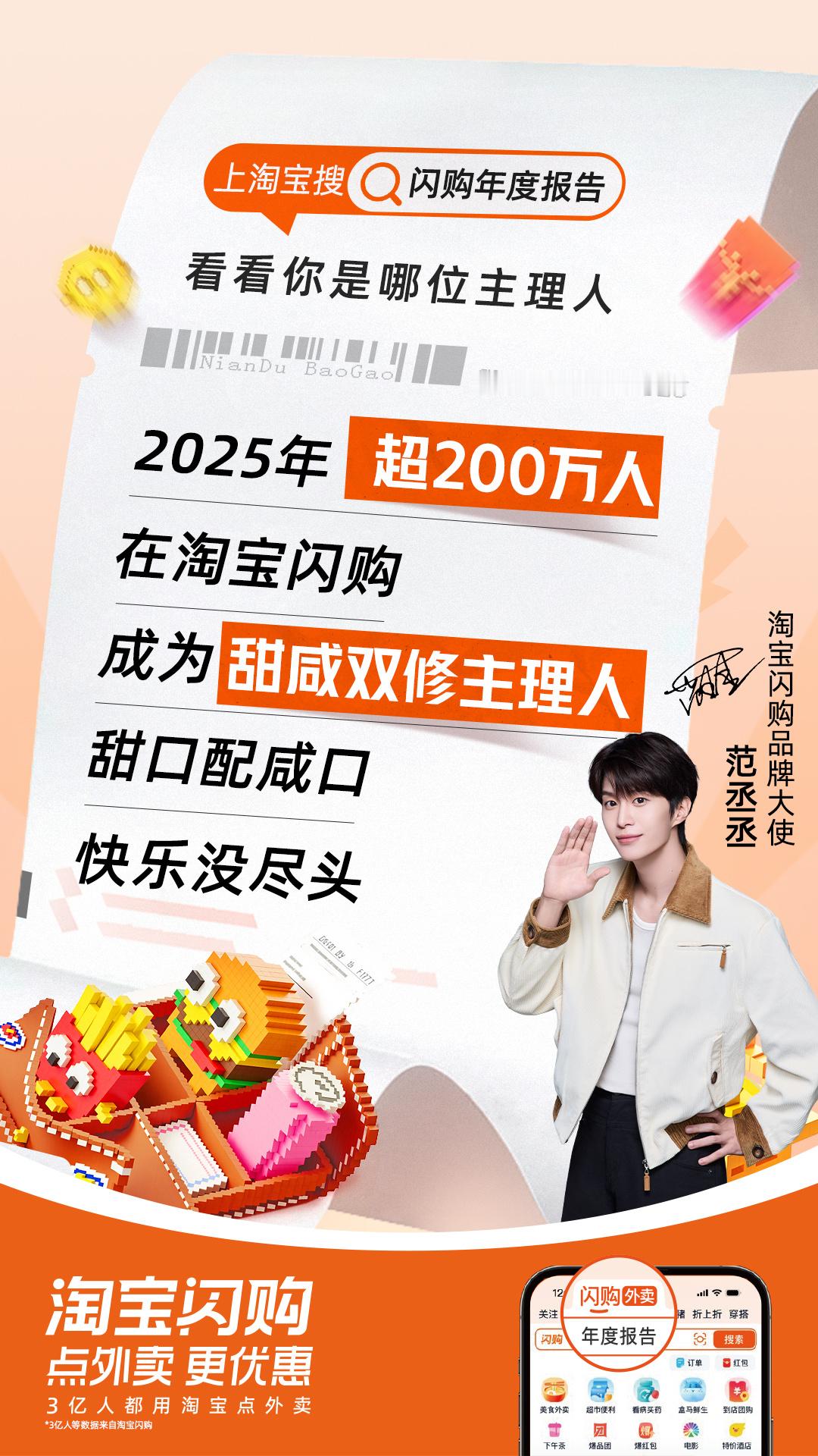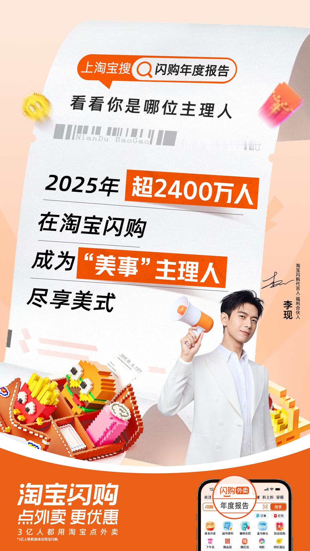 淘宝闪购年度报告首发啦,宝这波你玩这么大!现在竟然可以Pick我的本命代言人一起开年度报告啊,简直太宠我们这些闪粉了!💥现在上淘宝搜索【闪购年度报告】,获取专属主理人身份,看看2025年在淘宝闪购省了多少吧,这波操作是不是懂你到心坎里了?👉还不快冲!!淘宝闪购年度报告 上淘宝闪购解锁你的年度主理人身份