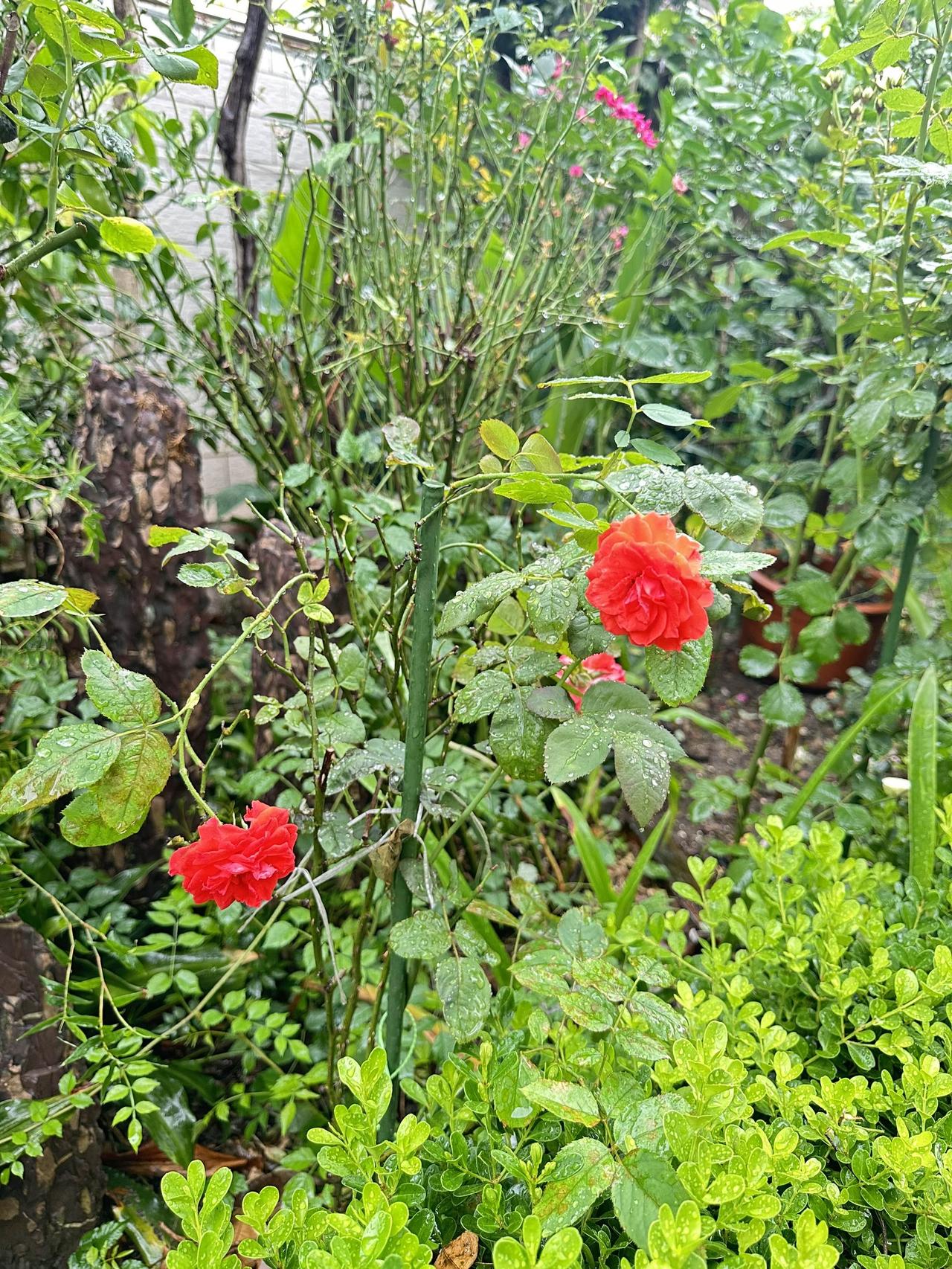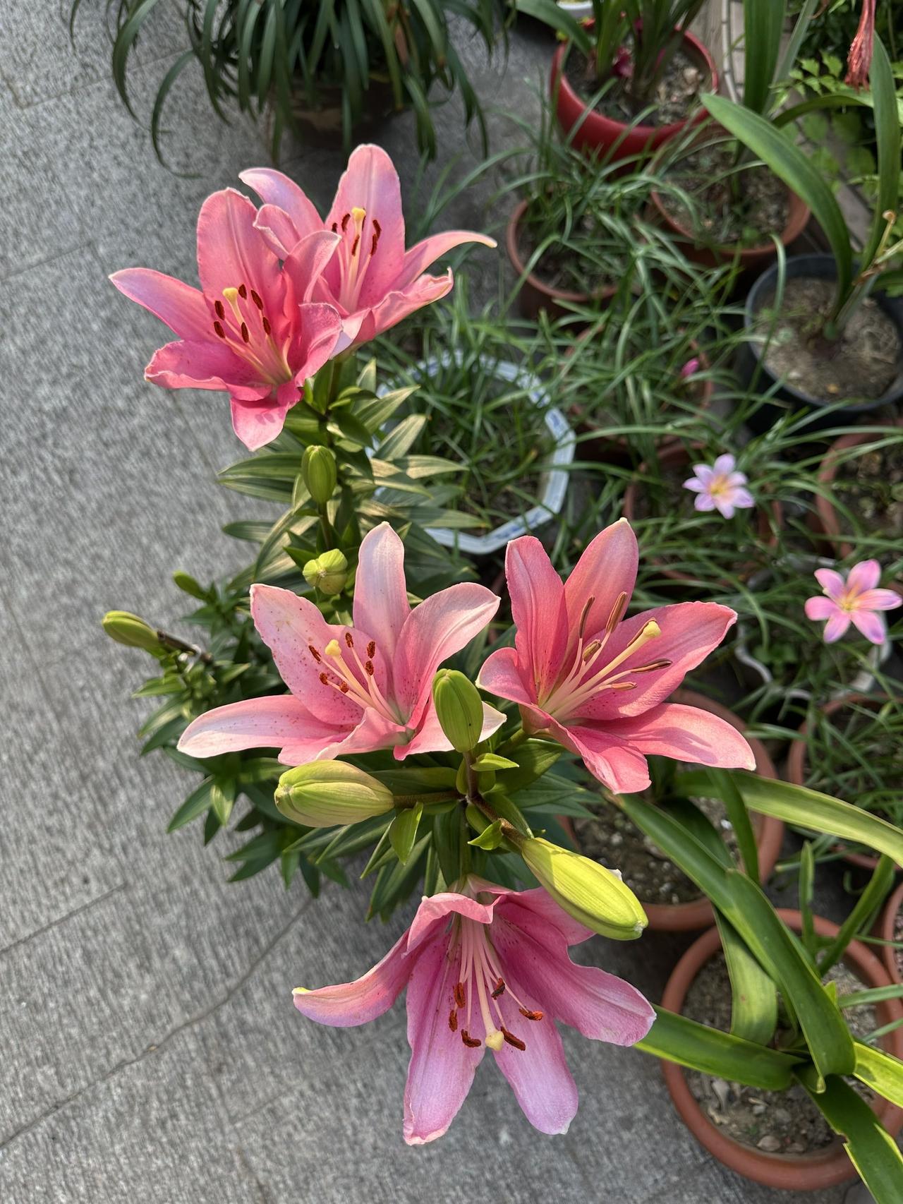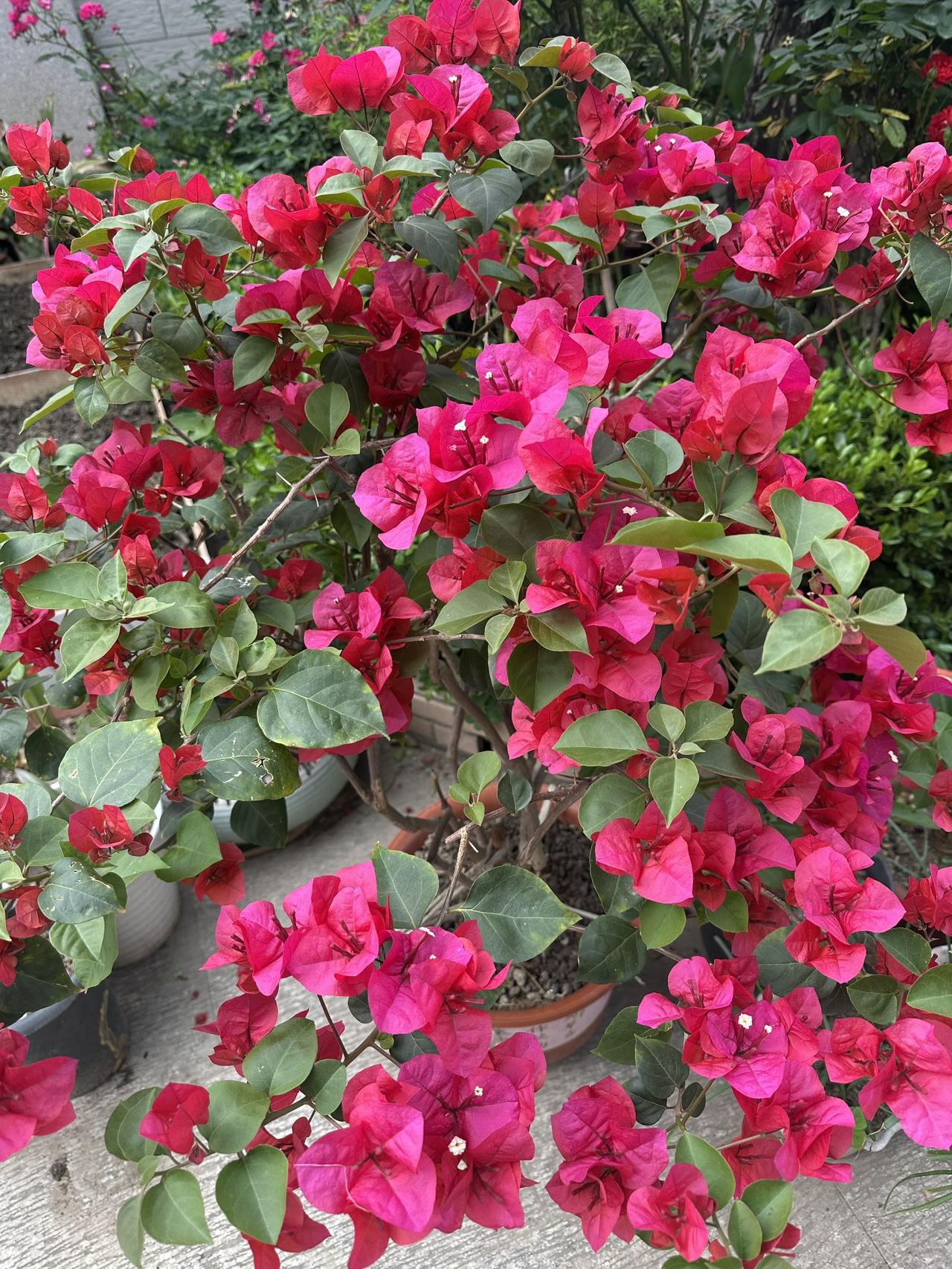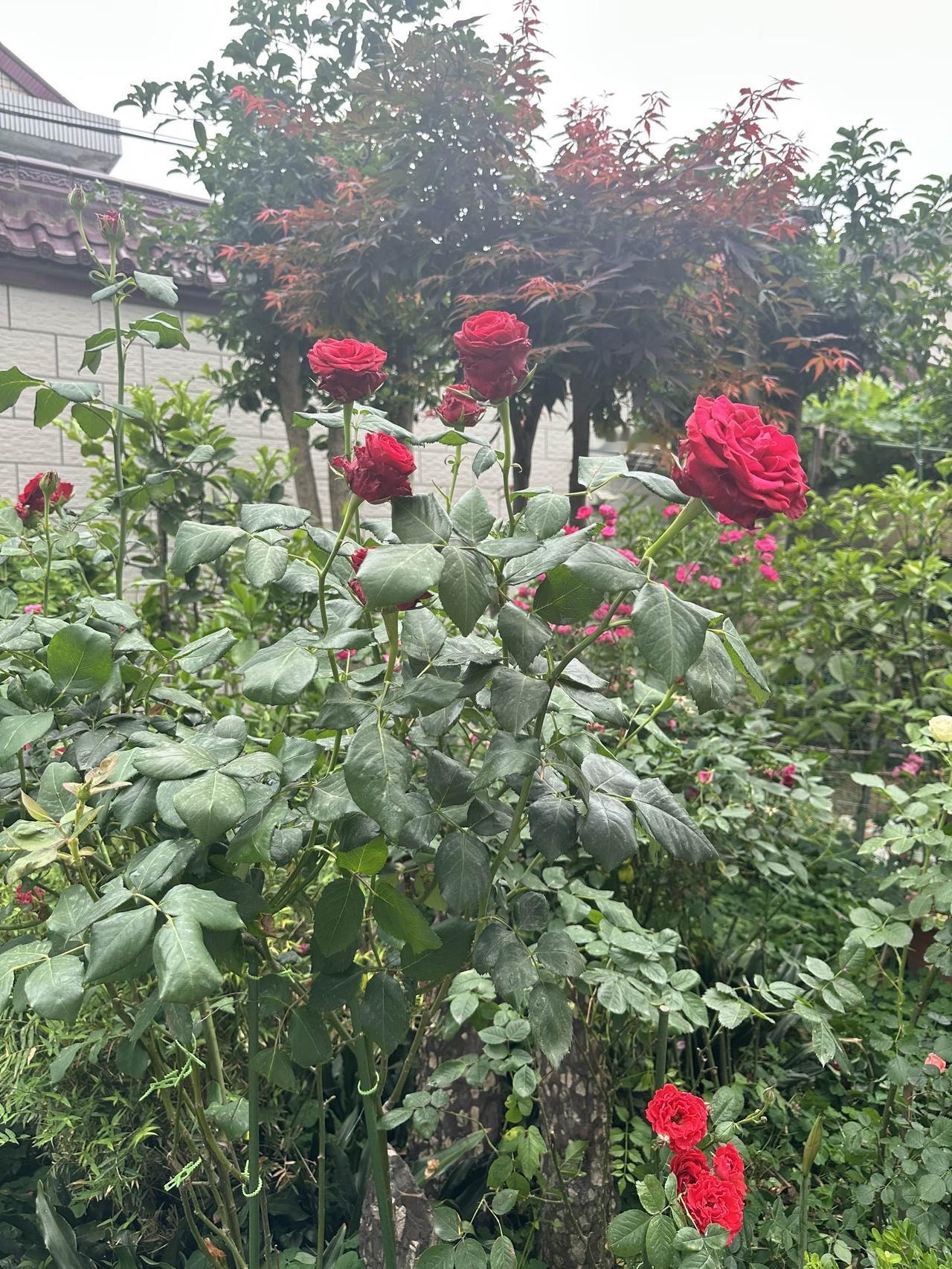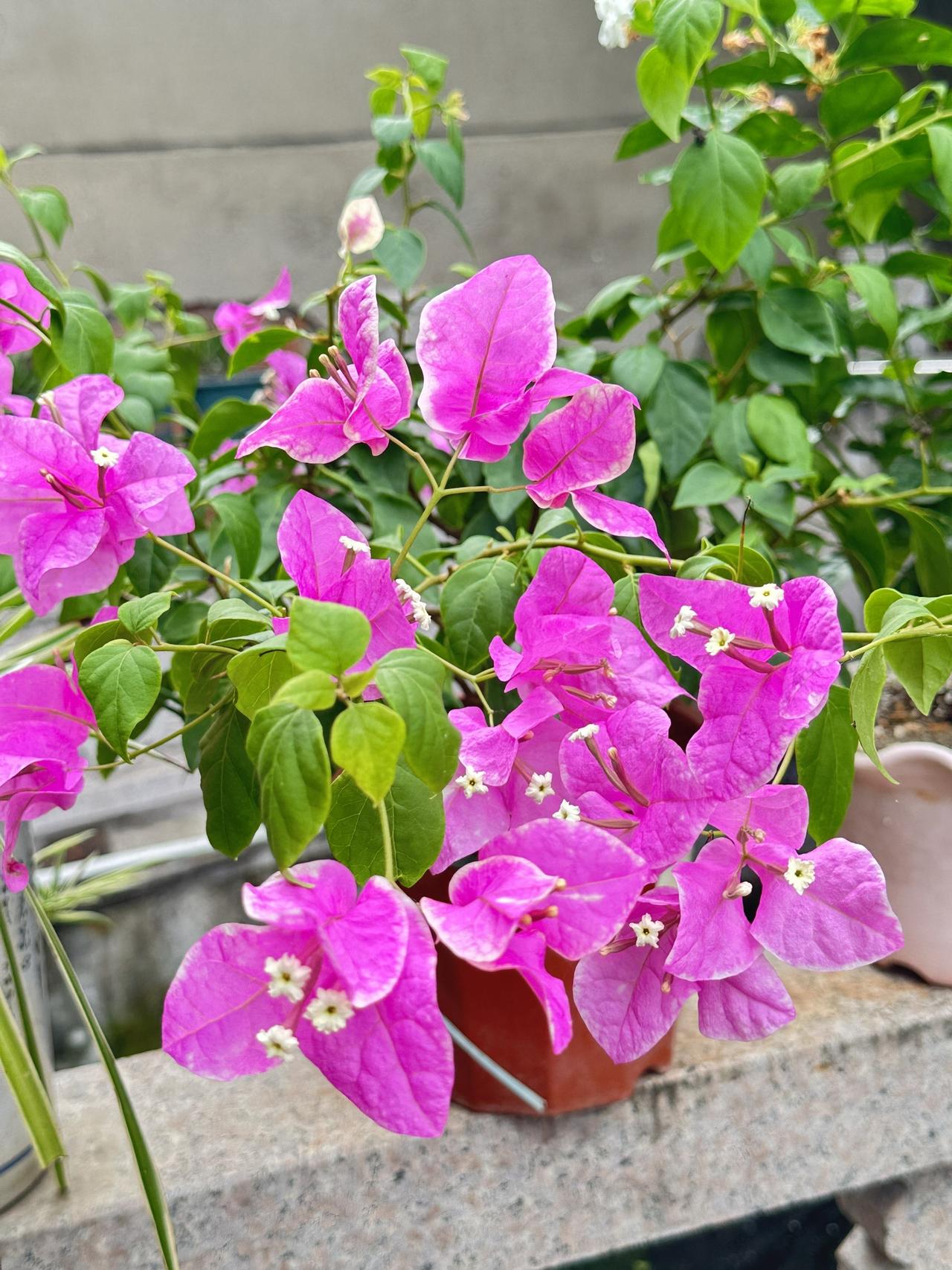 小院的花,看着这些花草从幼苗慢慢长成繁茂的样子,开花的瞬间真的觉得所有的养护都值得了。 三角梅开得热烈奔放,玫红、正红、奶白的品种各有风姿,层层叠叠的苞片像打翻了调色盘,在枝头肆意绽放;风雨兰顶着细叶亭亭玉立,粉嫩嫩的花瓣迎着光舒展,娇俏又灵动;香水百合的花箭高高挺立,粉艳的花瓣带着清甜的香气,微风一吹满院芬芳;还有各色月季,大红的浓烈、玫粉的温柔,一朵朵在绿叶间争艳,雨滴挂在花瓣上时,更添了几分娇艳欲滴的美。 养花打卡