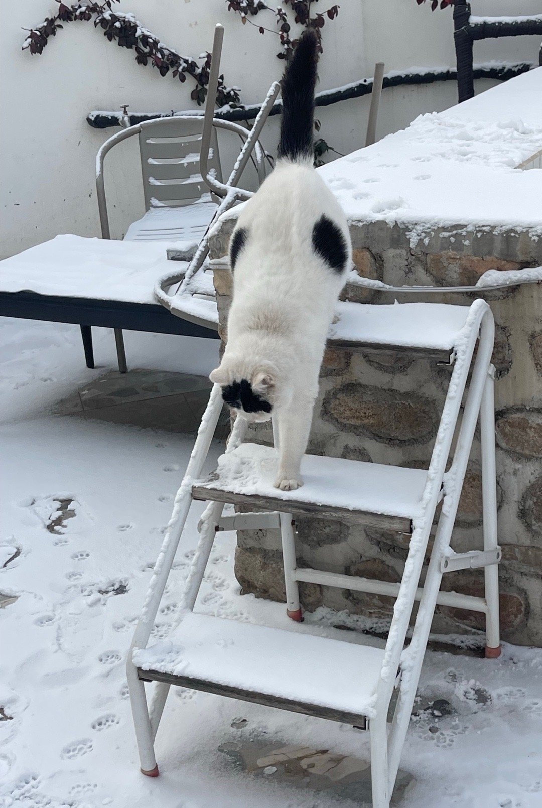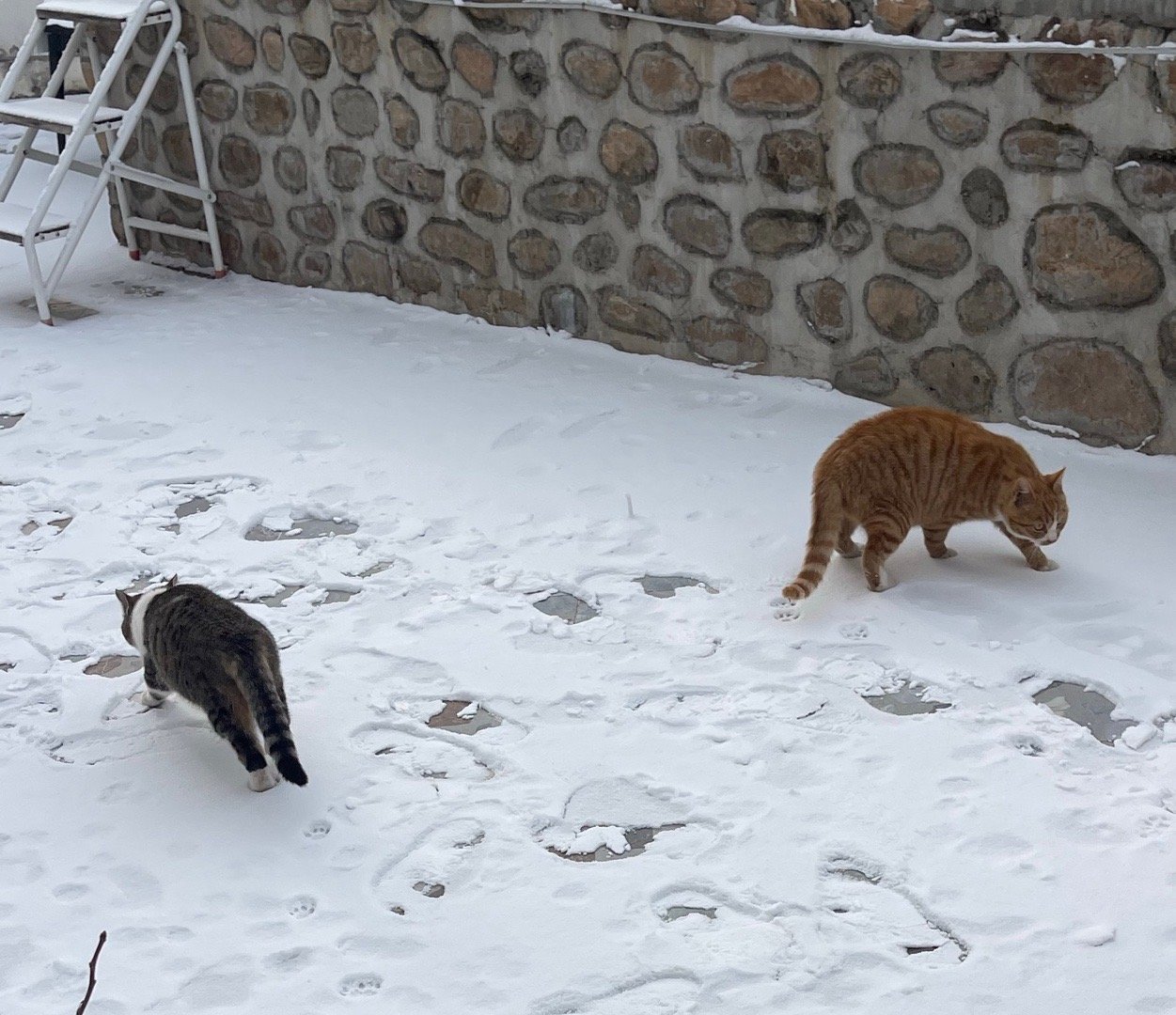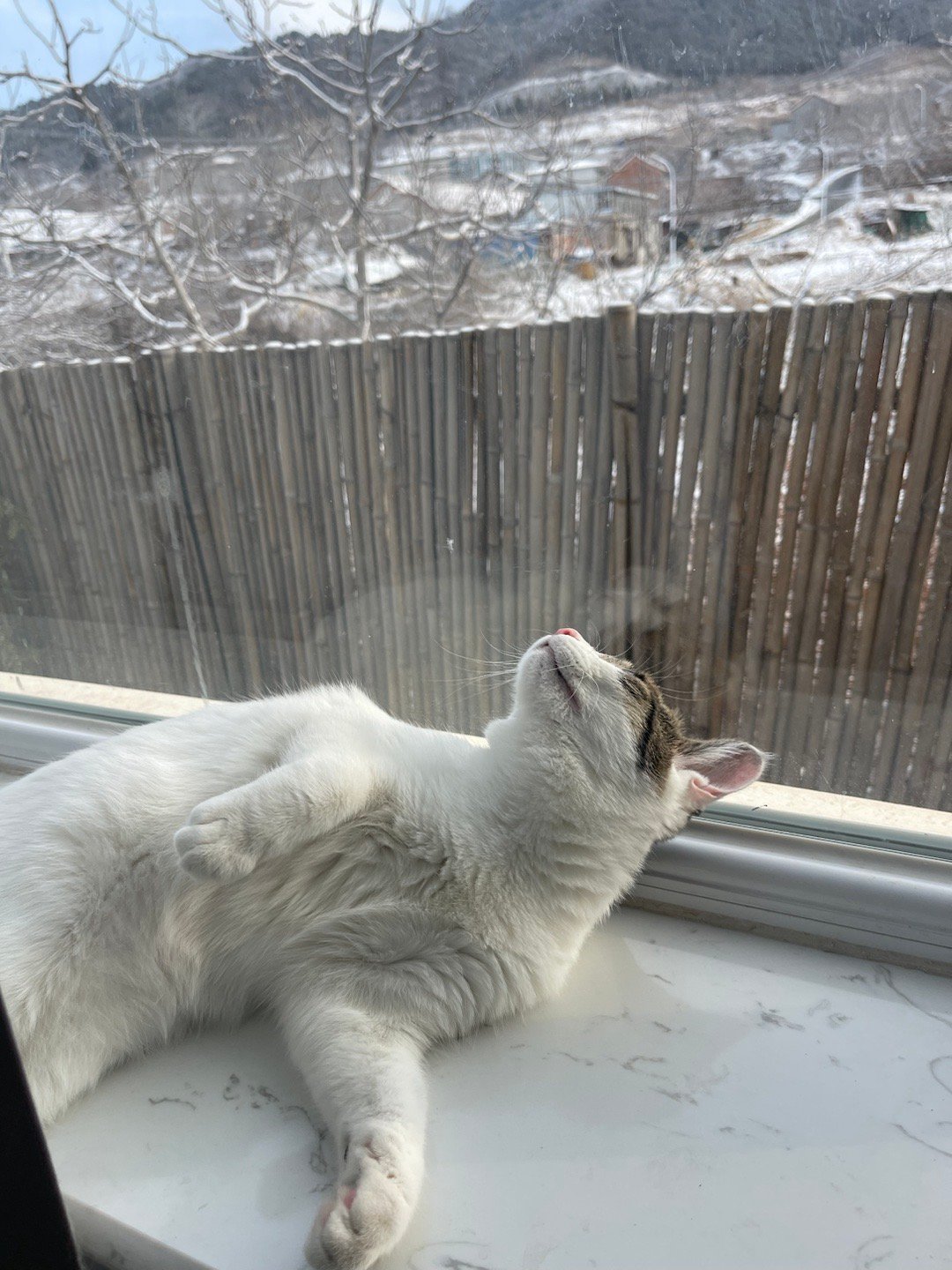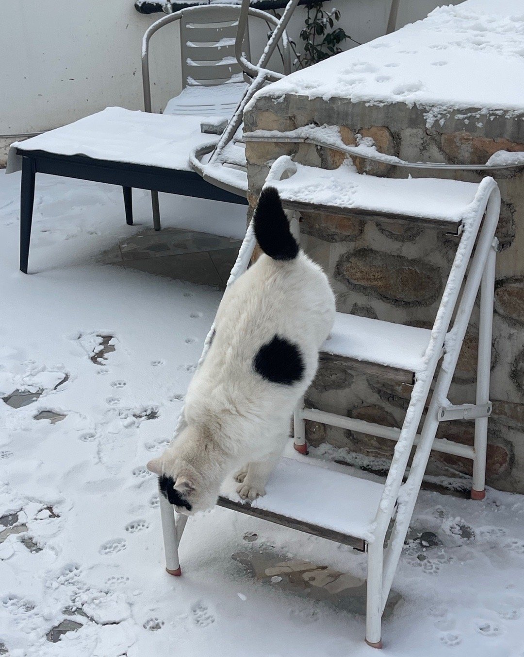 好看是好看,猫咪说,太冷。雪中漫步的主演是煤气罐罐大墨墨。群众演员有金丝、招财、灰点点和外国猫(估计是金渐层和狸花的串串)。皮蛋蛋是窗台前看雪的安静的小姑娘。